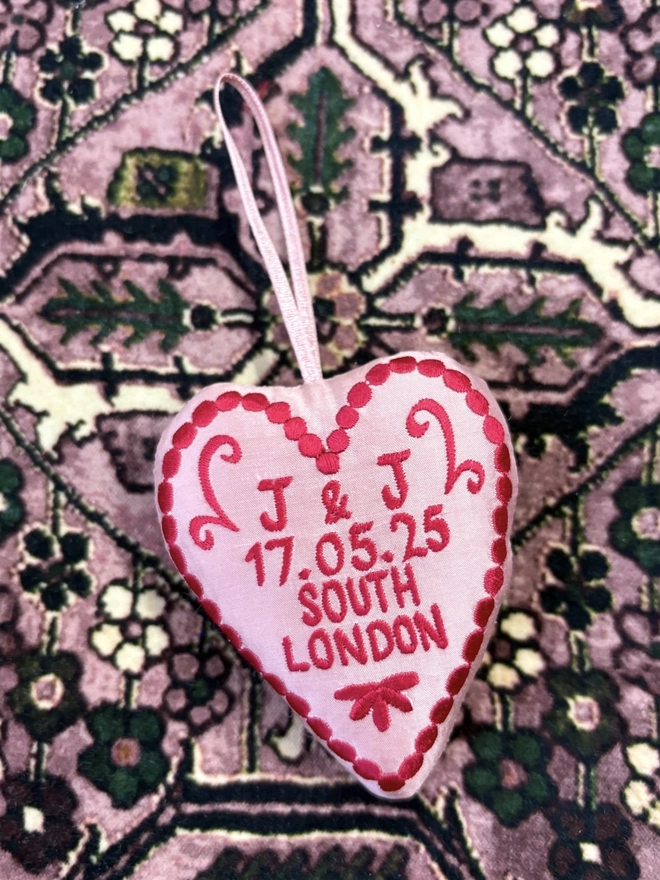 Personalised Initials/Date/Place Heart Hanging Decoration