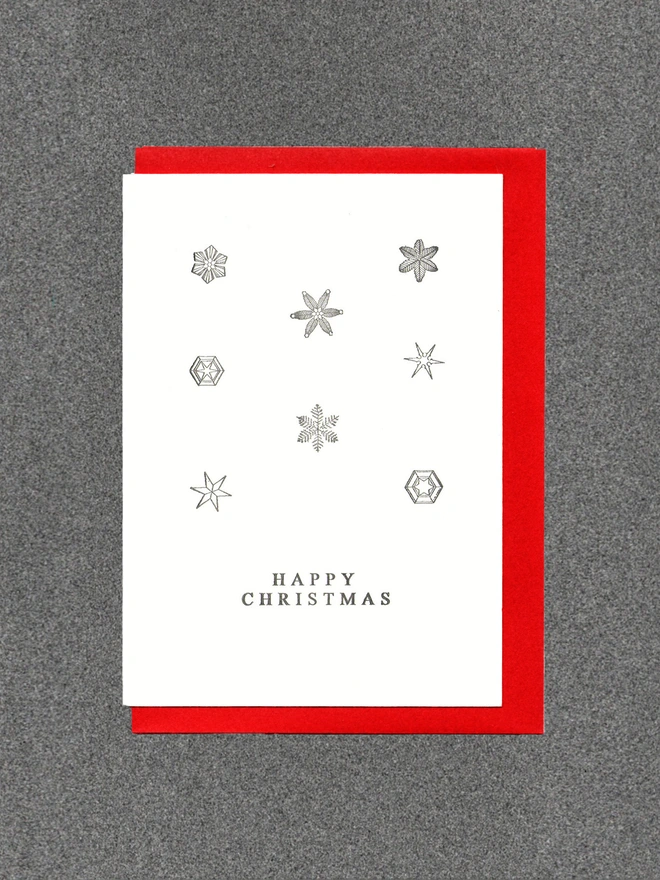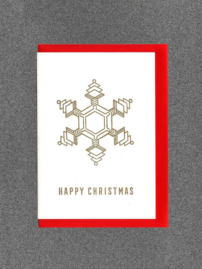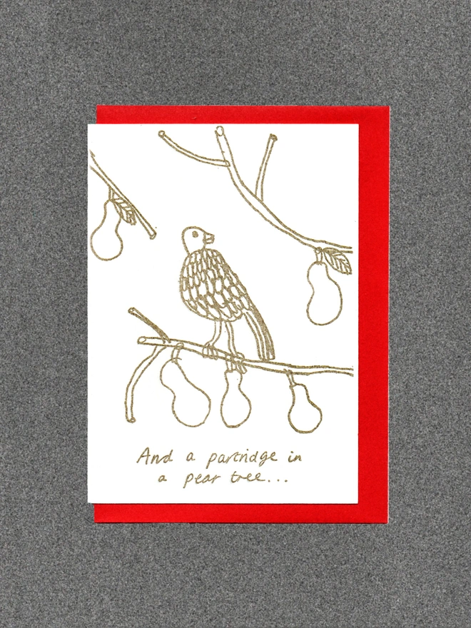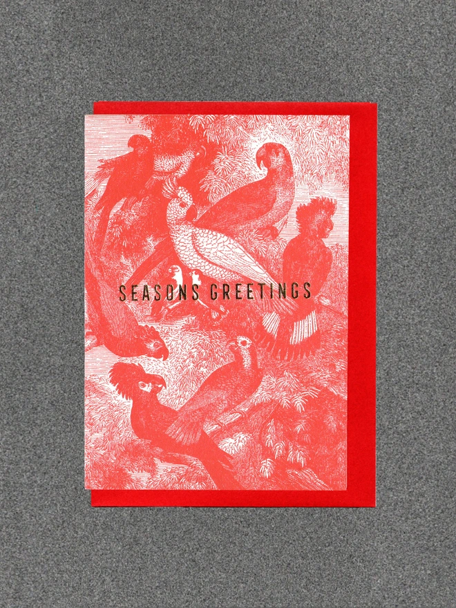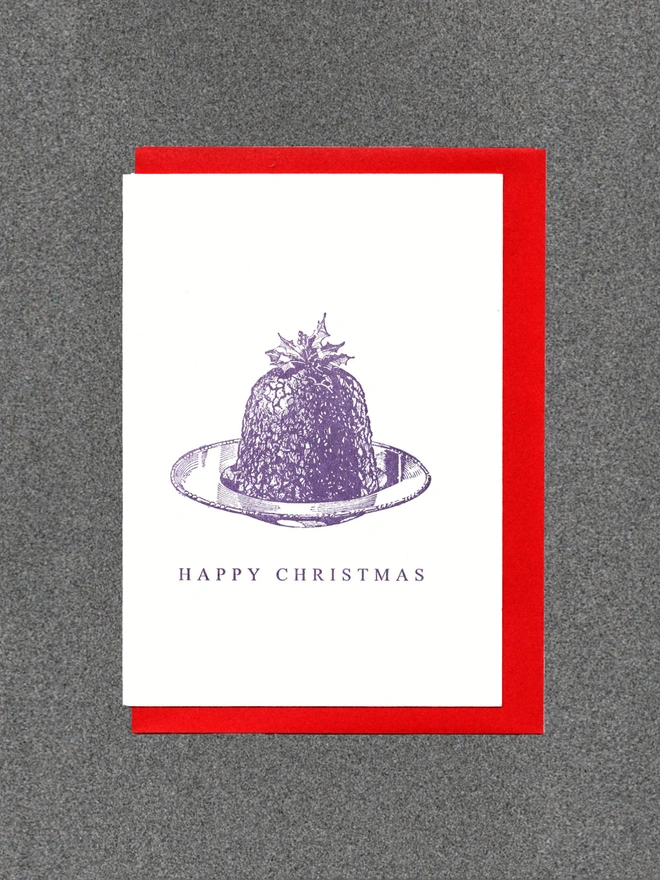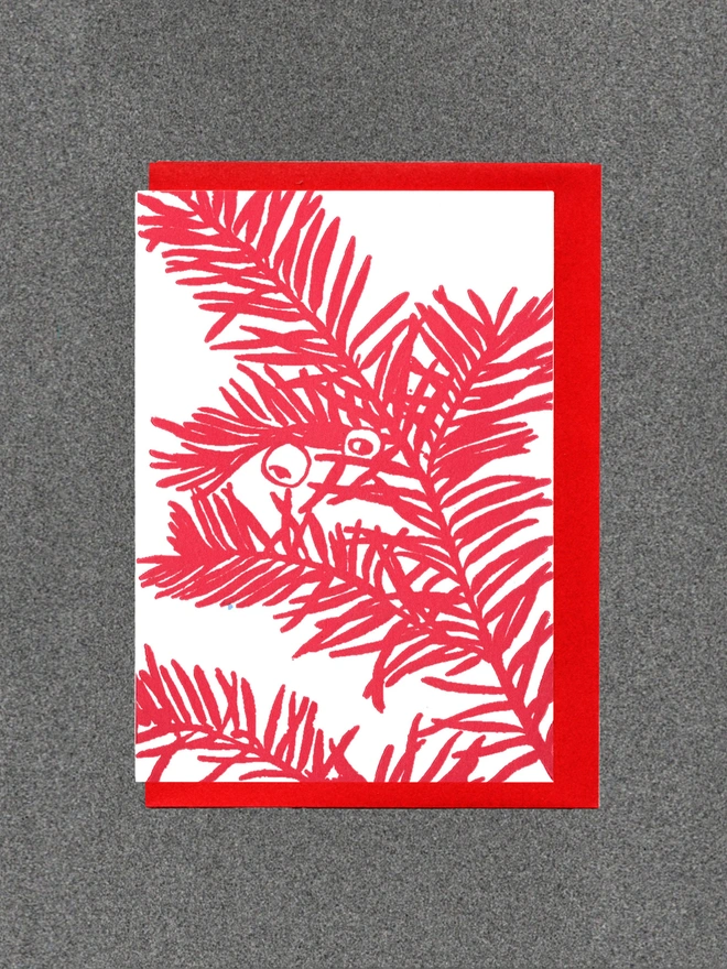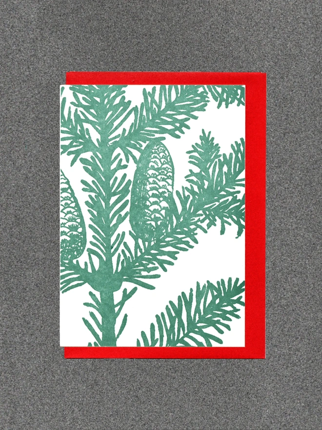 Blank inside. Letterpress cards printed in small batches on an antique press using ecologically sound paper, milled in the UK. A6 350gsm card (10.5 x 14.8cm) with red envelope and recyclable cello.