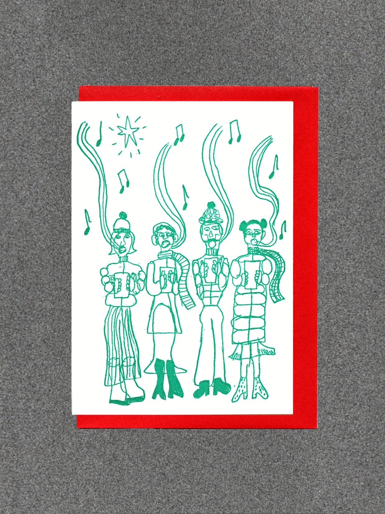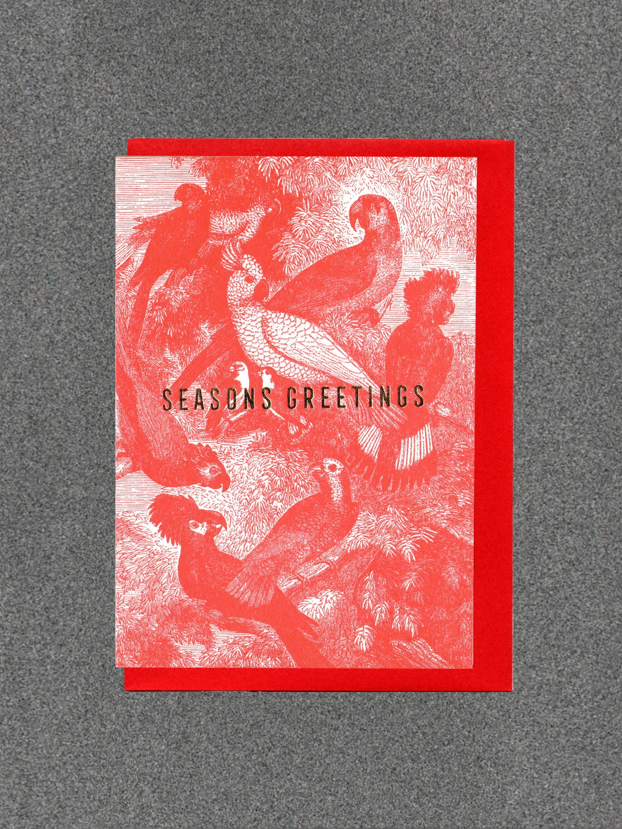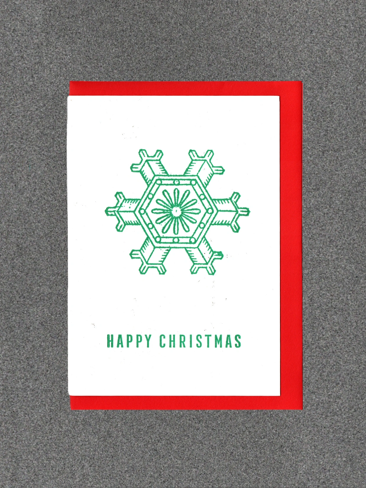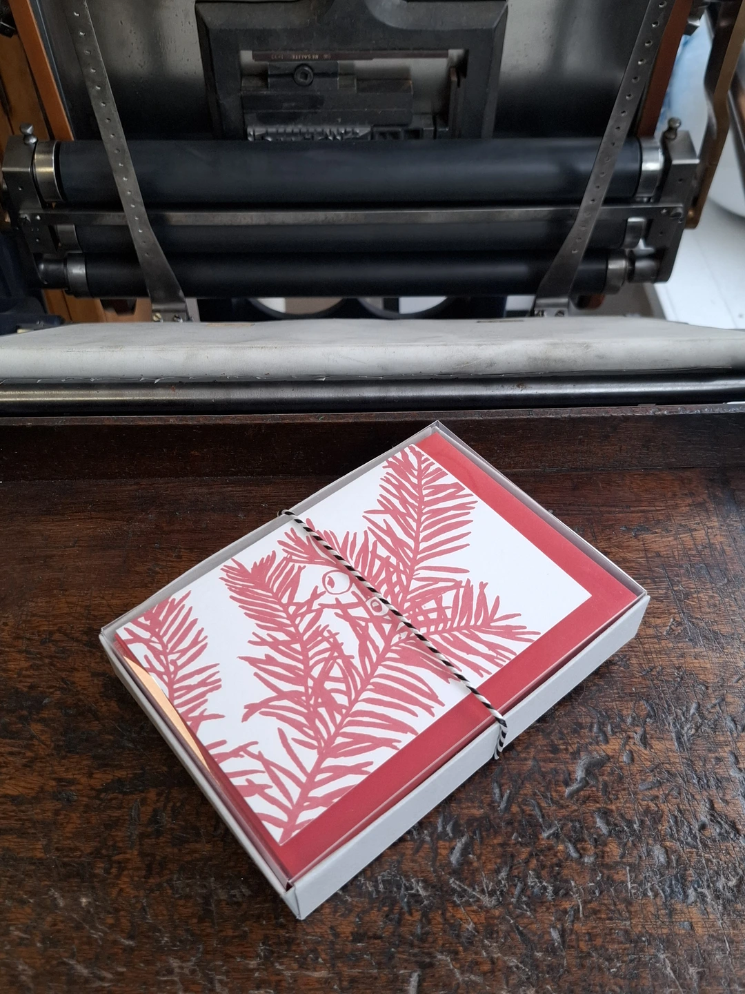 Blank inside. Letterpress cards printed in small batches on an antique press using ecologically sound paper, milled in the UK. A6 350gsm card (10.5 x 14.8cm) with red envelope and recyclable cello.