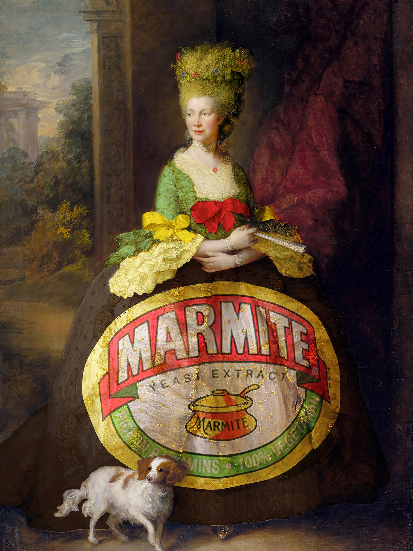 Part of a limited edition humorous Pop-Surrealist print collection combining classical portraiture with modern pop cultural elements. Monster Munch design.