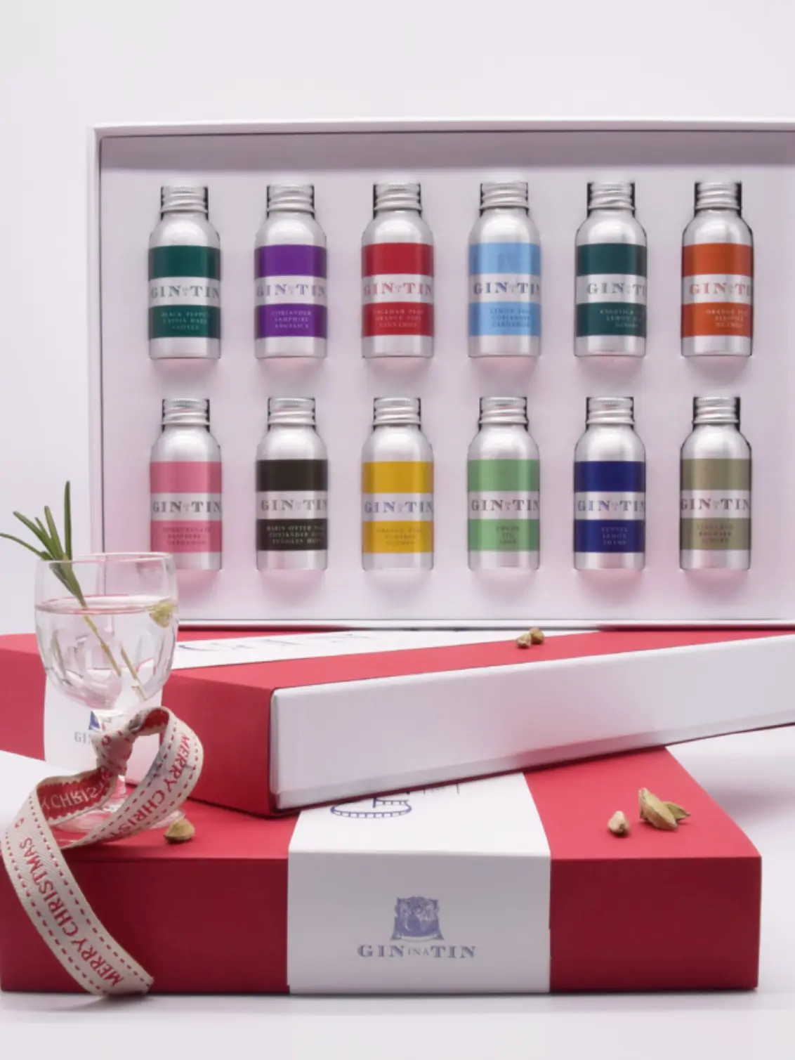 Twelve 35ml tins, each showcasing a unique London Dry Gin at 40% ABV, crafted with care by Gin In A Tin.