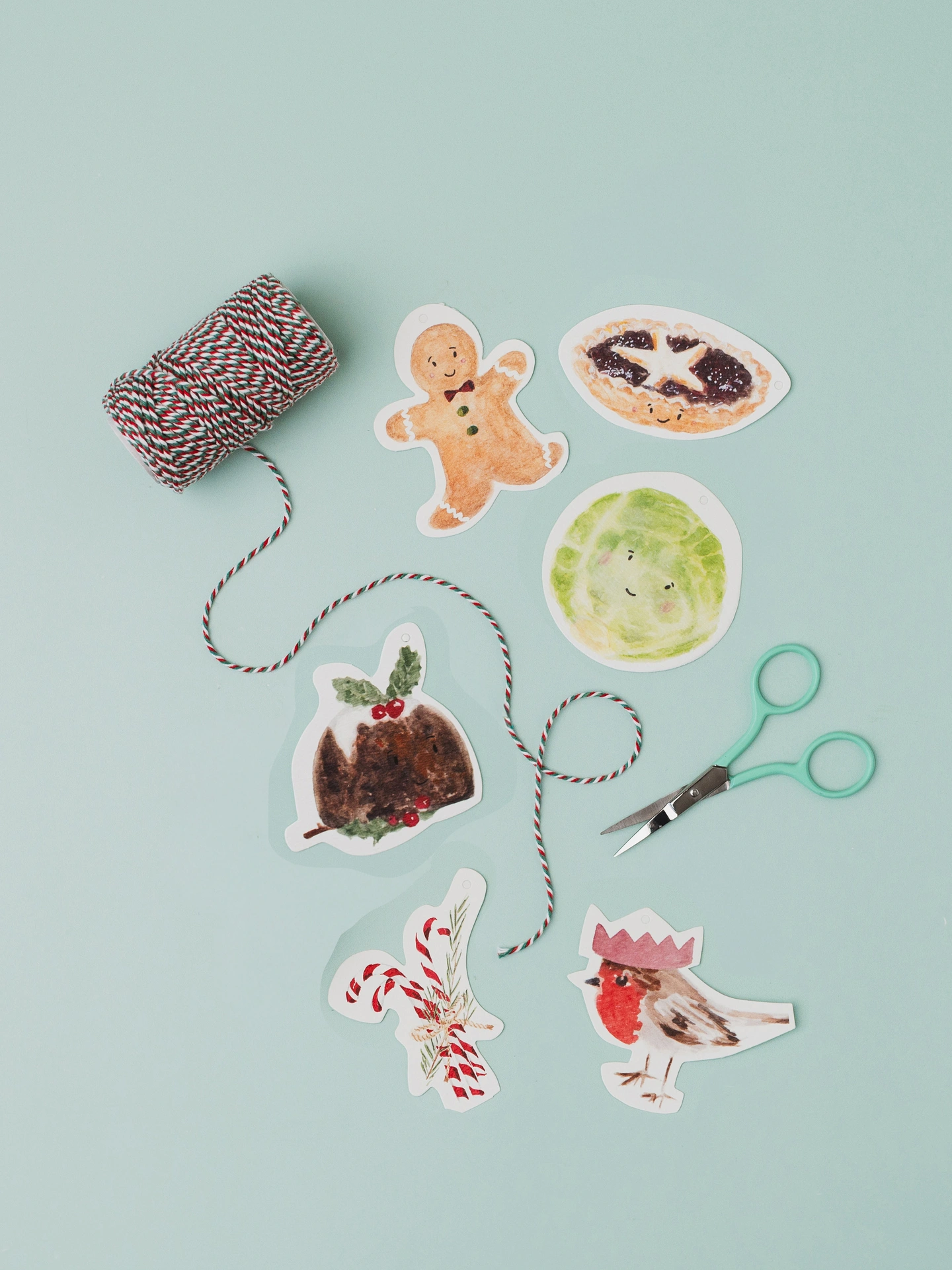 Included in the pack are 2 x Mince Pie tags, 2 x Robin Tags, 2 x Brussel Sprout Tags, 2 x Candy Cane Tags, 2 x Gingerbread Man Tags, 2 x Christmas Pudding Tags