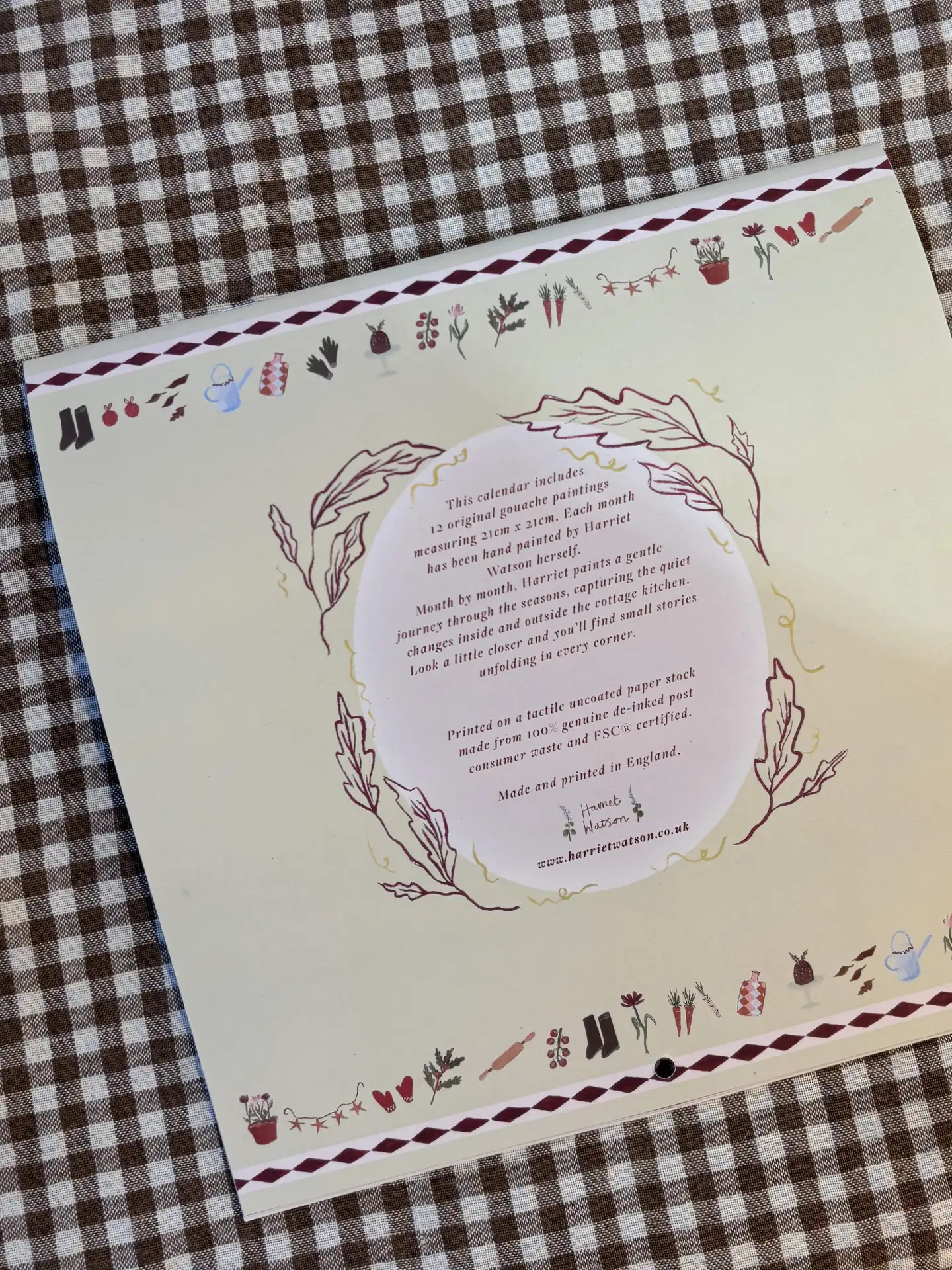 'Cottage Kitchen' calendar for 2026! Month by month, Harriet paints a gentle journey through the seasons, capturing the quiet changes inside and outside the cottage kitchen. Look a little closer and you’ll find small stories unfolding in every corner...