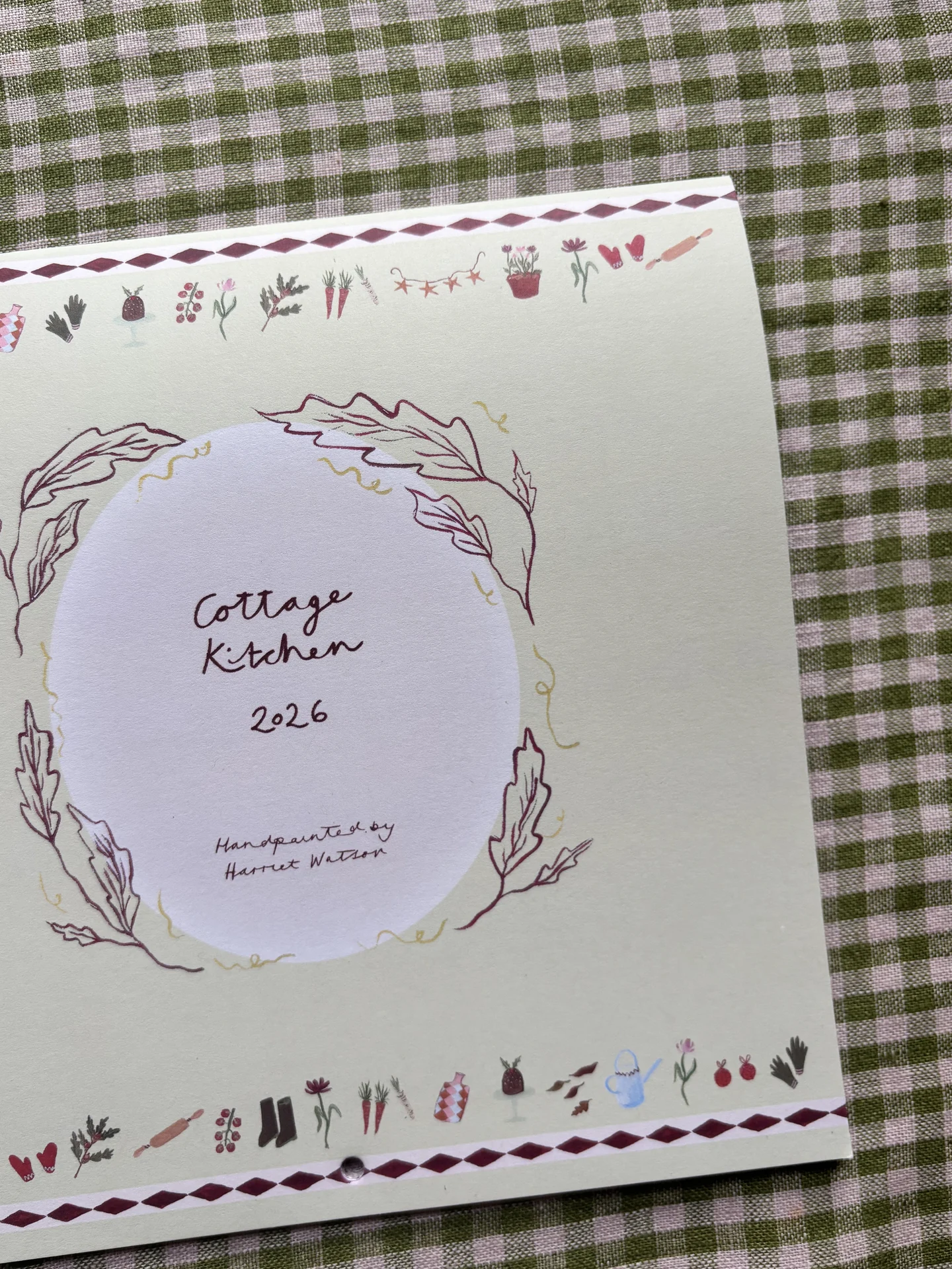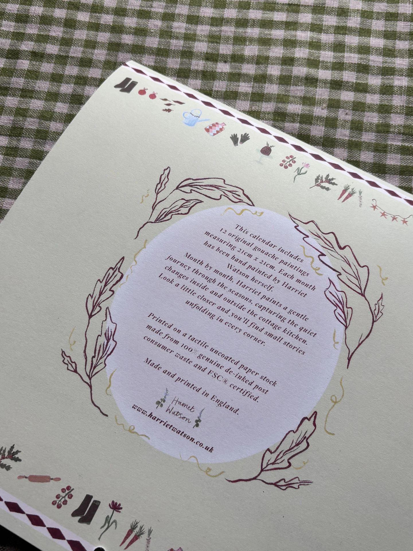 ‘Cottage Kitchen’ is a collection of 12 original gouache paintings measuring 21cm x 21cm. Month by month, Harriet paints a gentle journey through the seasons, capturing the quiet changes inside and outside the cottage kitchen. Look a little closer and you’ll find small stories unfolding in every corner.