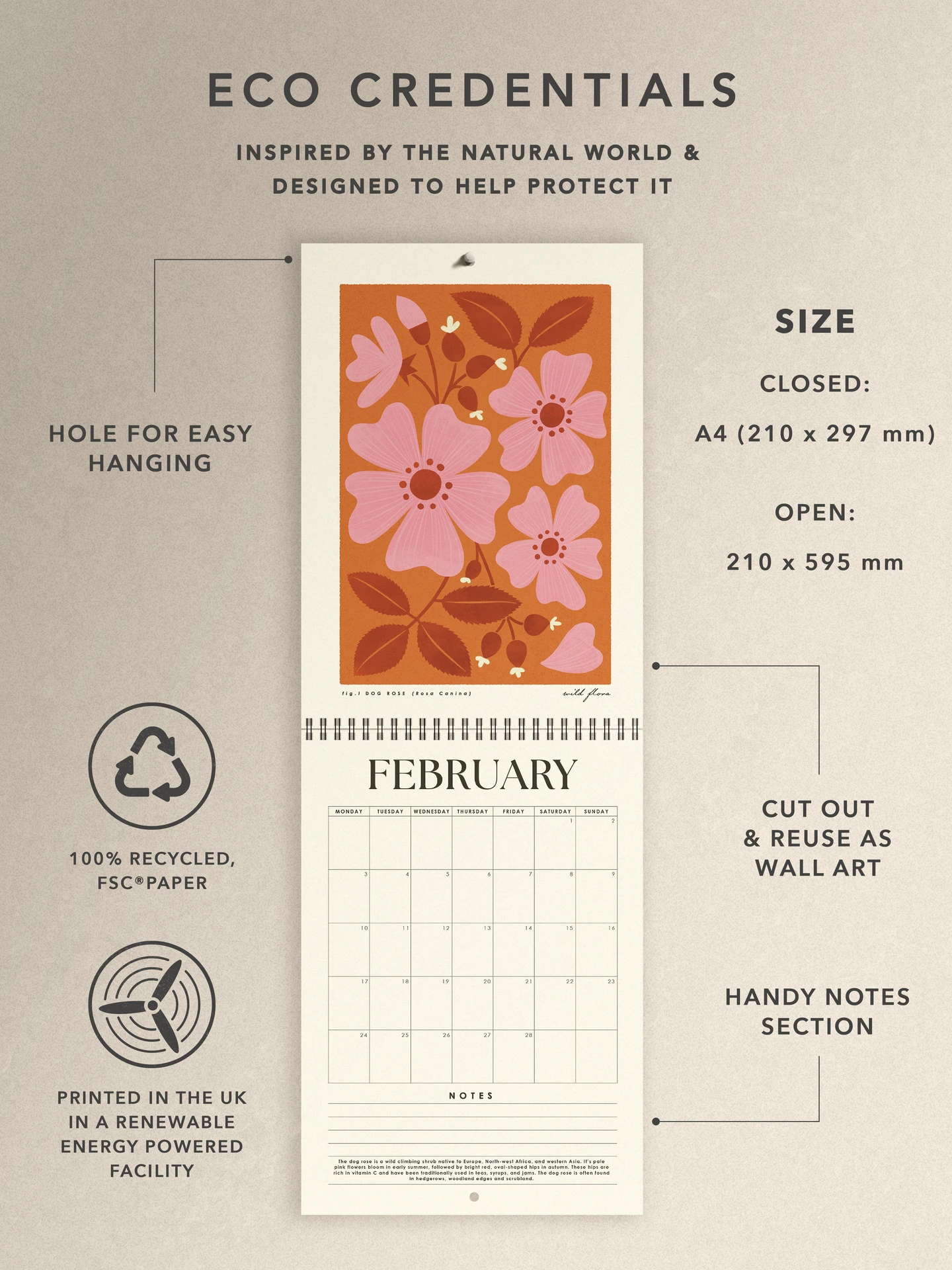 We believe beautiful products shouldn’t cost the earth, which is why our calendars are made from high quality, 100% recycled, FSC®Certified paper which also give them a lovely natural and vintage feel. They are fully recyclable and are printed in the UK in a renewable energy powered facility. Plus we plant a tree with Ecologi for each calendar purchased to help our world be a greener place.