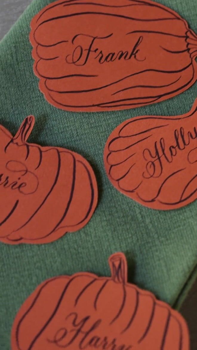 Perfect for fall gatherings, Halloween parties, or Thanksgiving dinners, these pumpkins blend rustic warmth with a touch of spooky elegance. Their bold seasonal colours make them stand out as both functional name cards and beautiful table decorations.