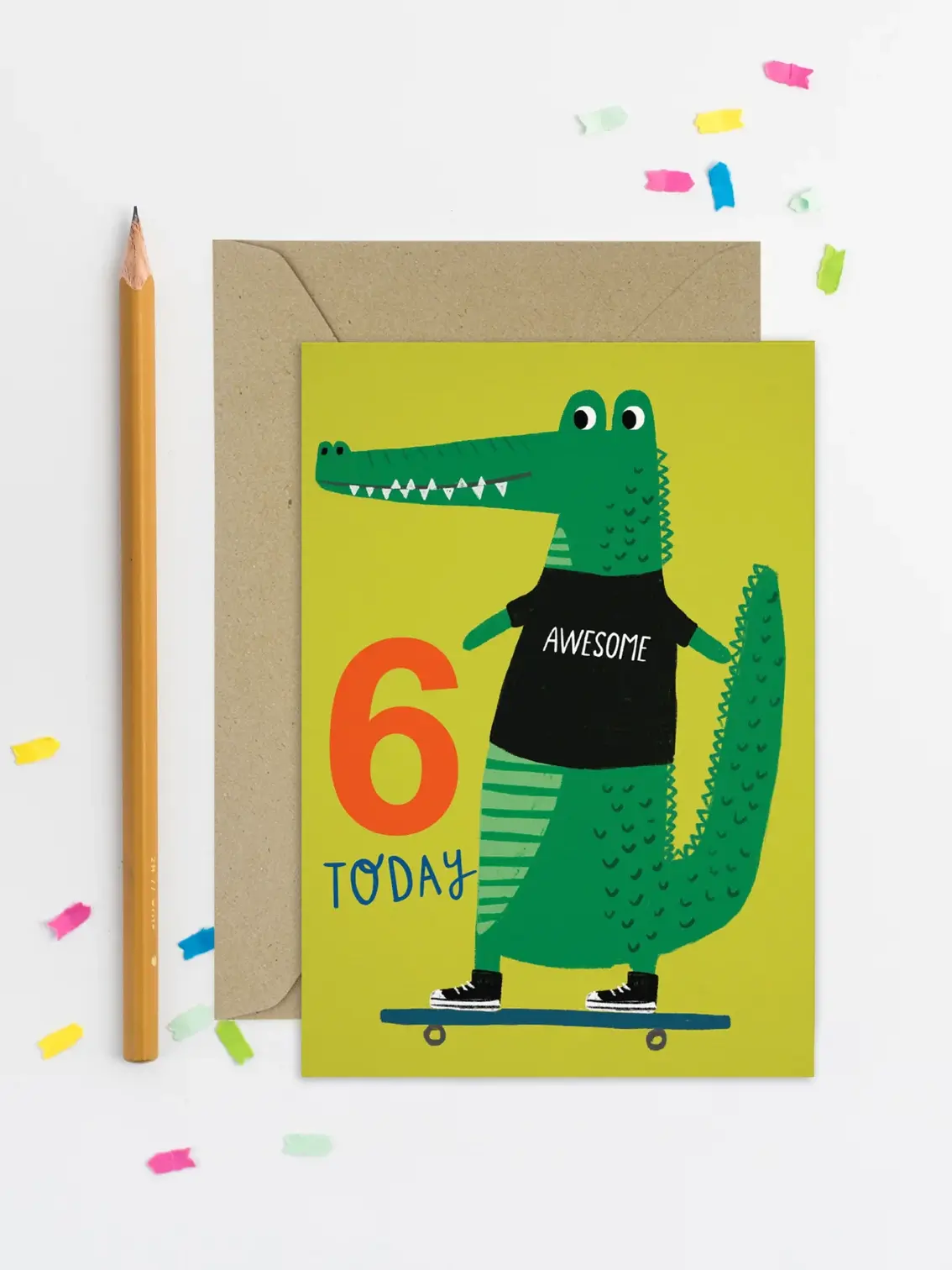 '6 Today Awesome' Skateboarding Croc 6th Birthday Card