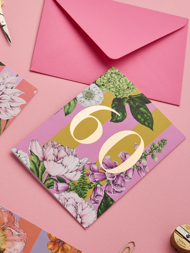 '60' Floral Age Milestone Card