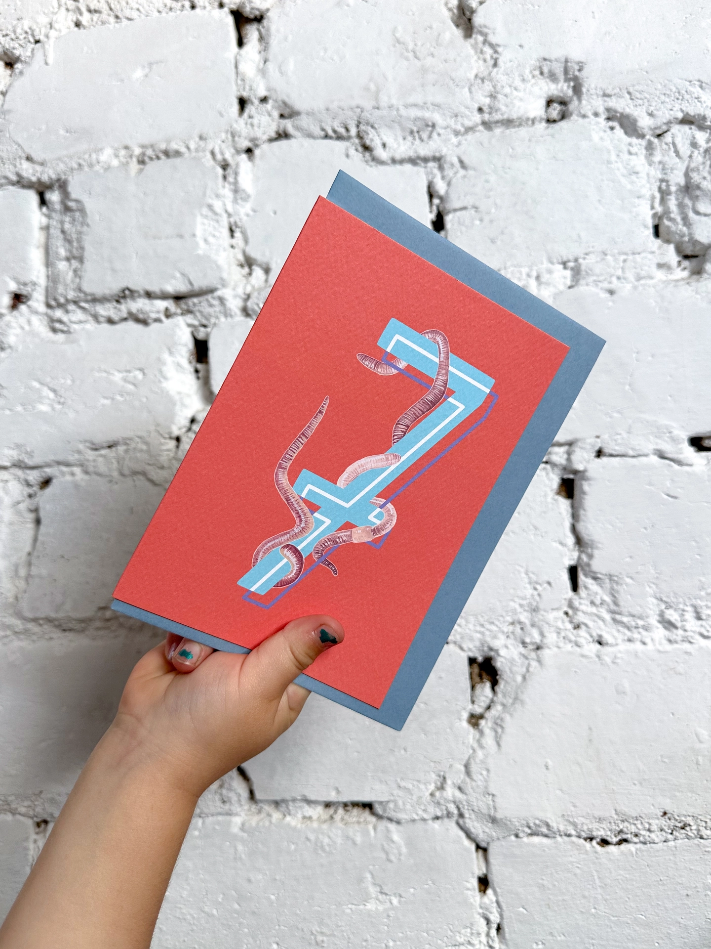 A cool, chic take on a number birthday card! Bright, bold and featuring a lovely illustration of a Earthworms. Perfect for a seventh birthday! Or could also be a cool way to say Happy Anniversary!