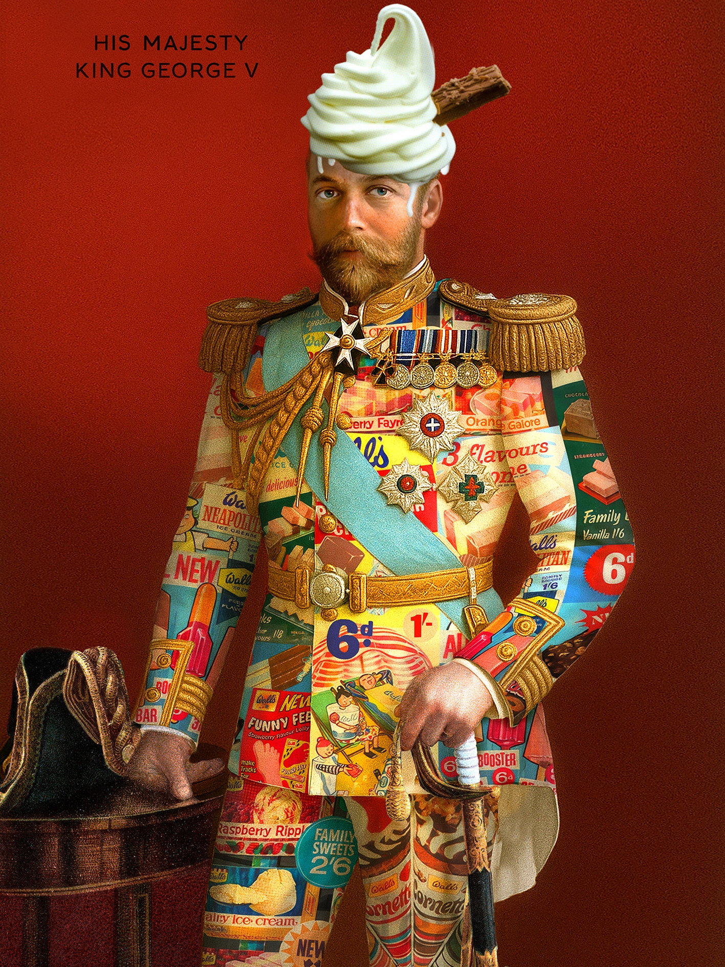 Part of a large ongoing series of works called The Product Placement Project. Humorous & fun Pop-Surrealist work exploring the connections and boundaries between art and advertising and a reflection on the functions of fashion & clothing