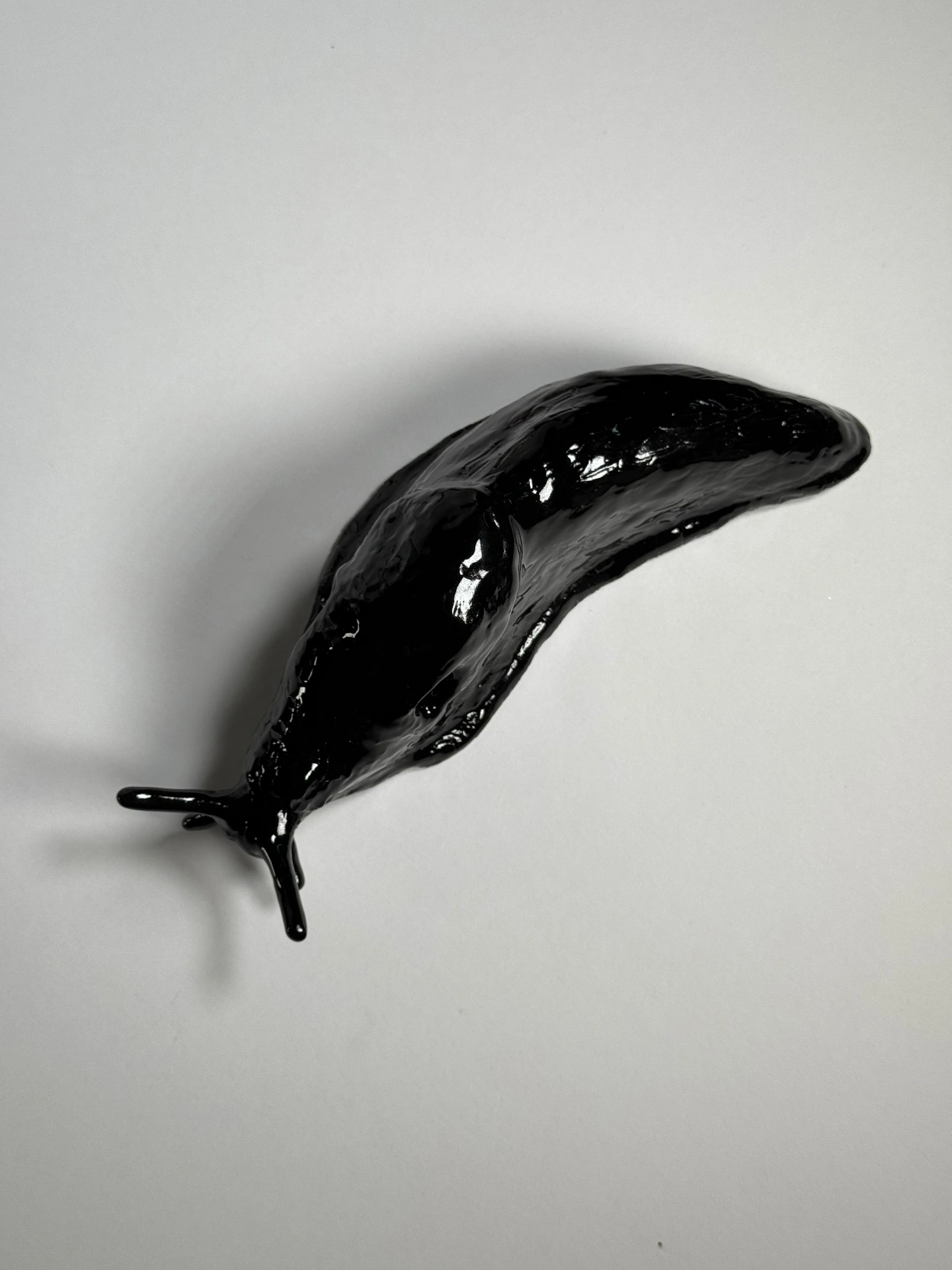 Large stoneware ceramic slug sculpture by Tally Walker Warne.
