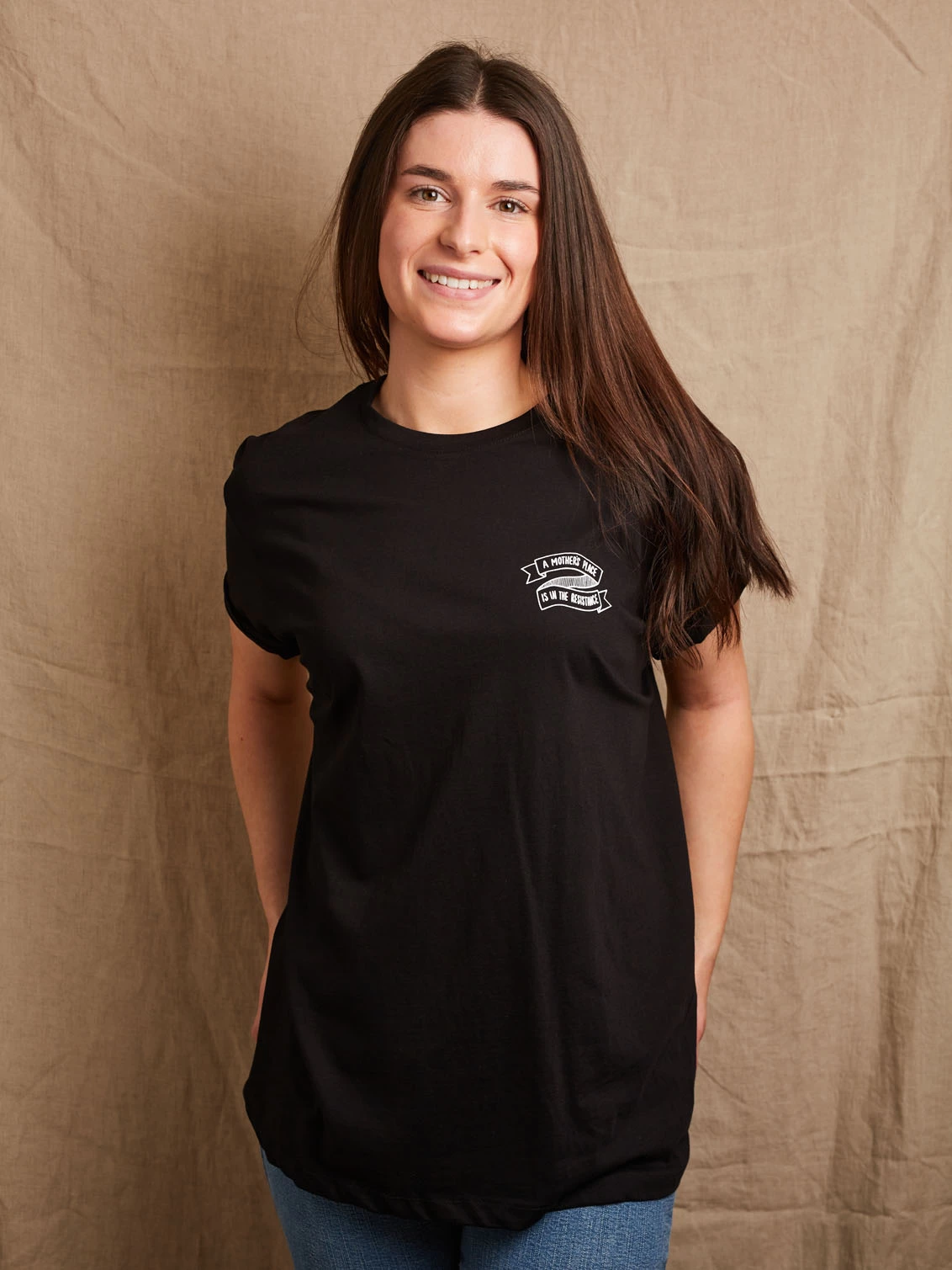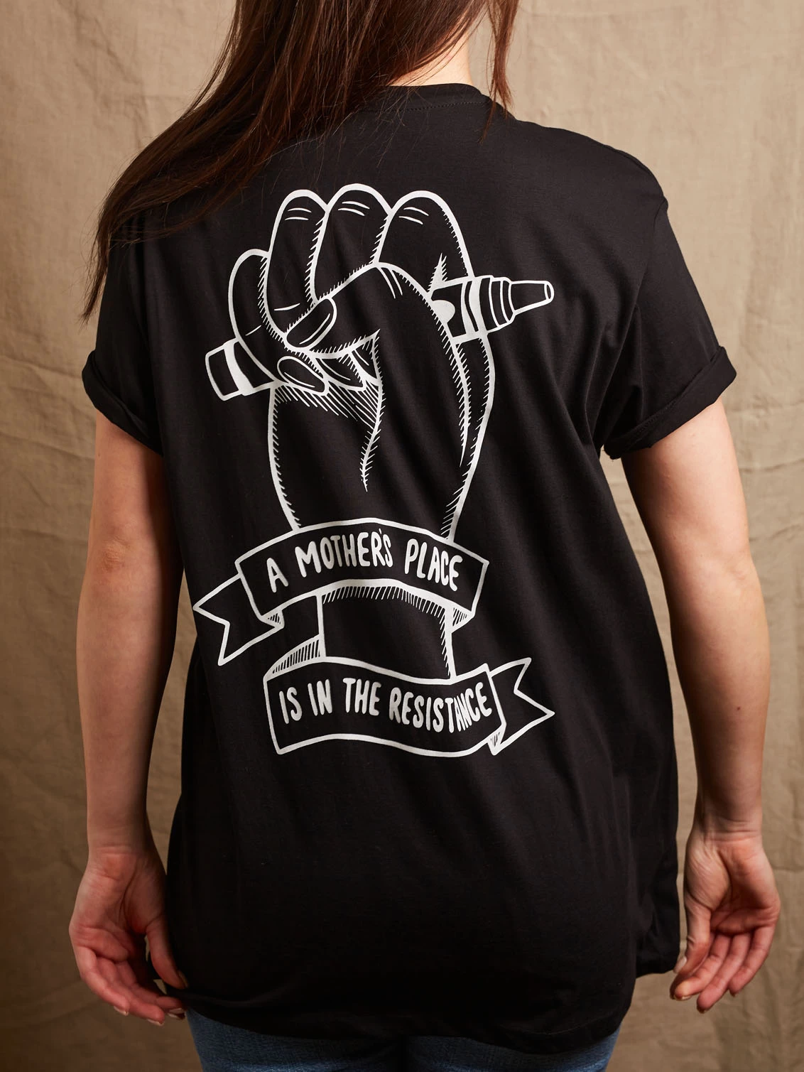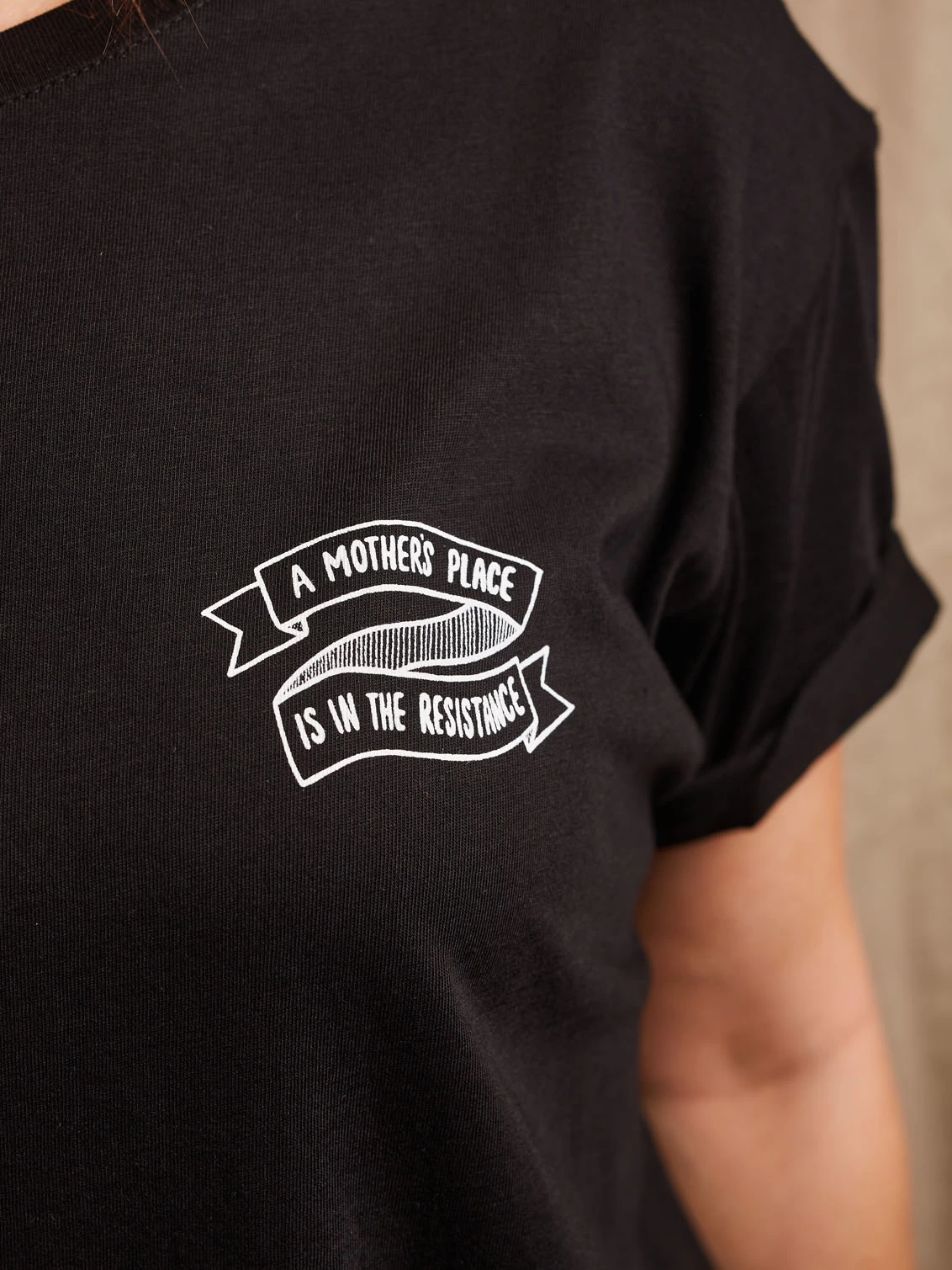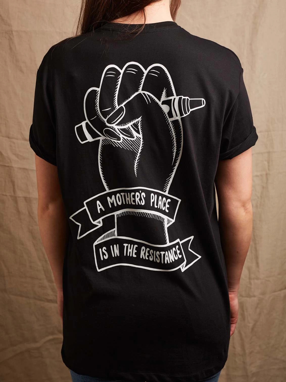 This black tee is the latest addition to our A Mother's Place Is in the Resistance range, with a lighter weight cotton with a lovely soft feel.
