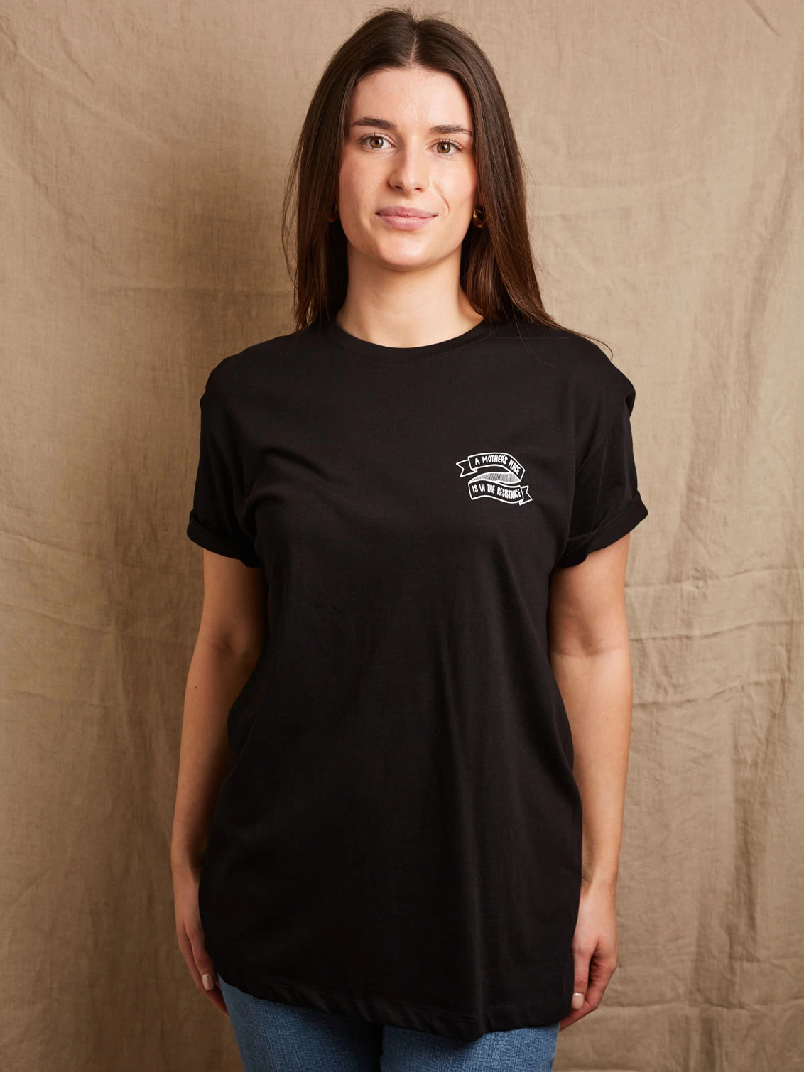 This black tee is the latest addition to our A Mother's Place Is in the Resistance range, with a lighter weight cotton with a lovely soft feel...