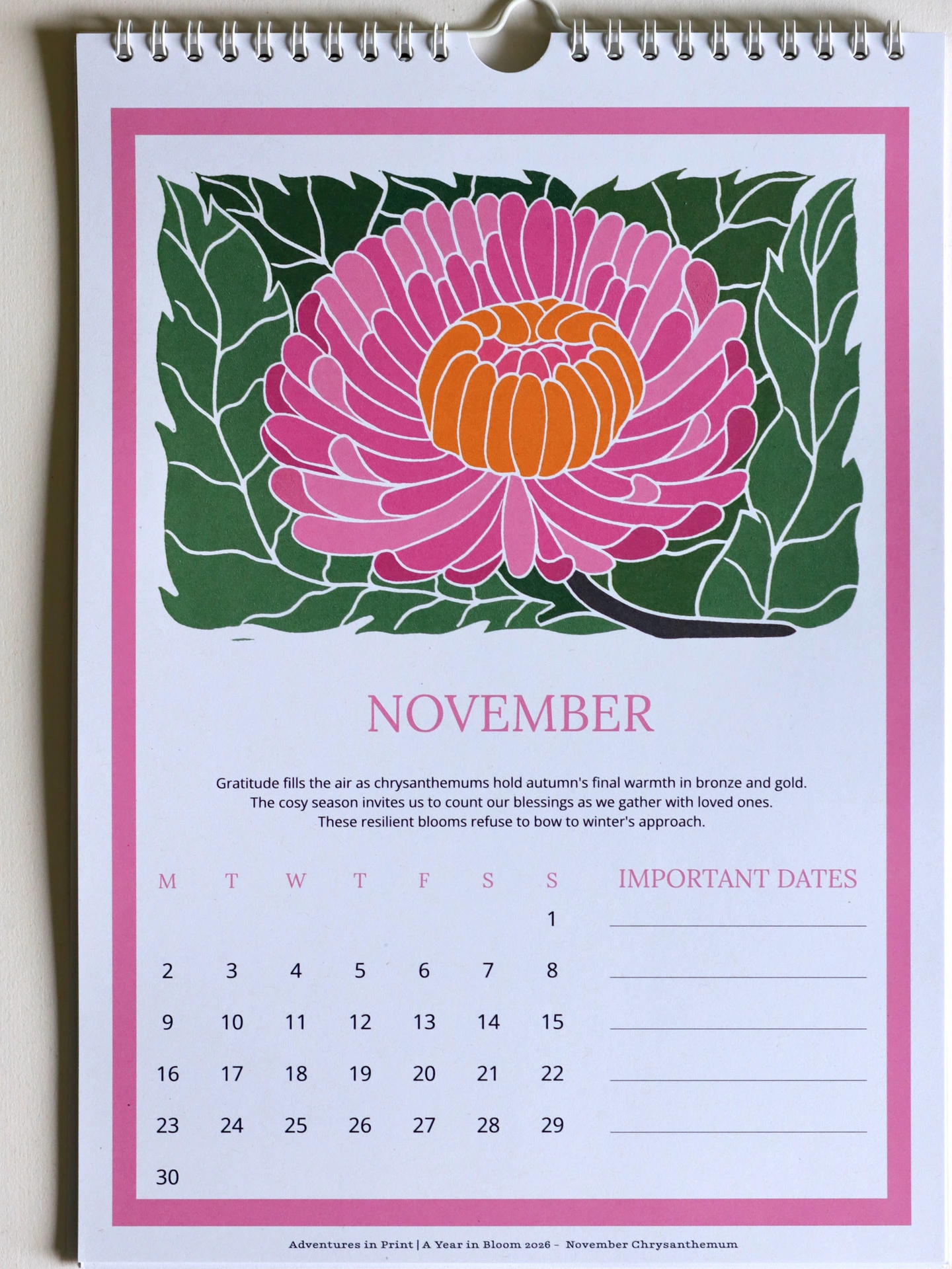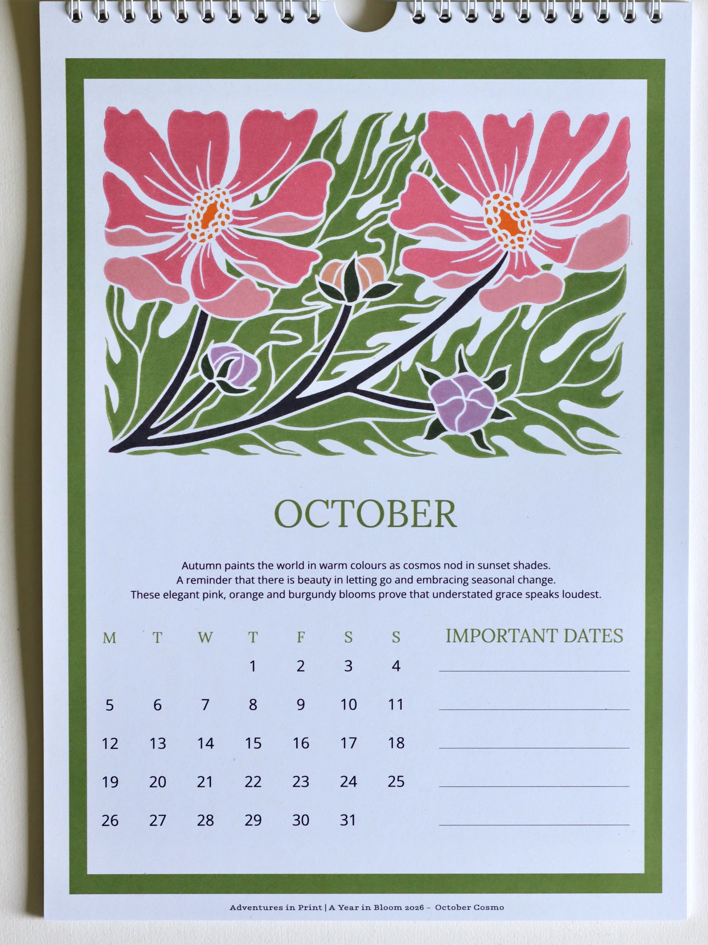 A Year in Bloom Linocut Floral Wall Calendar 2026