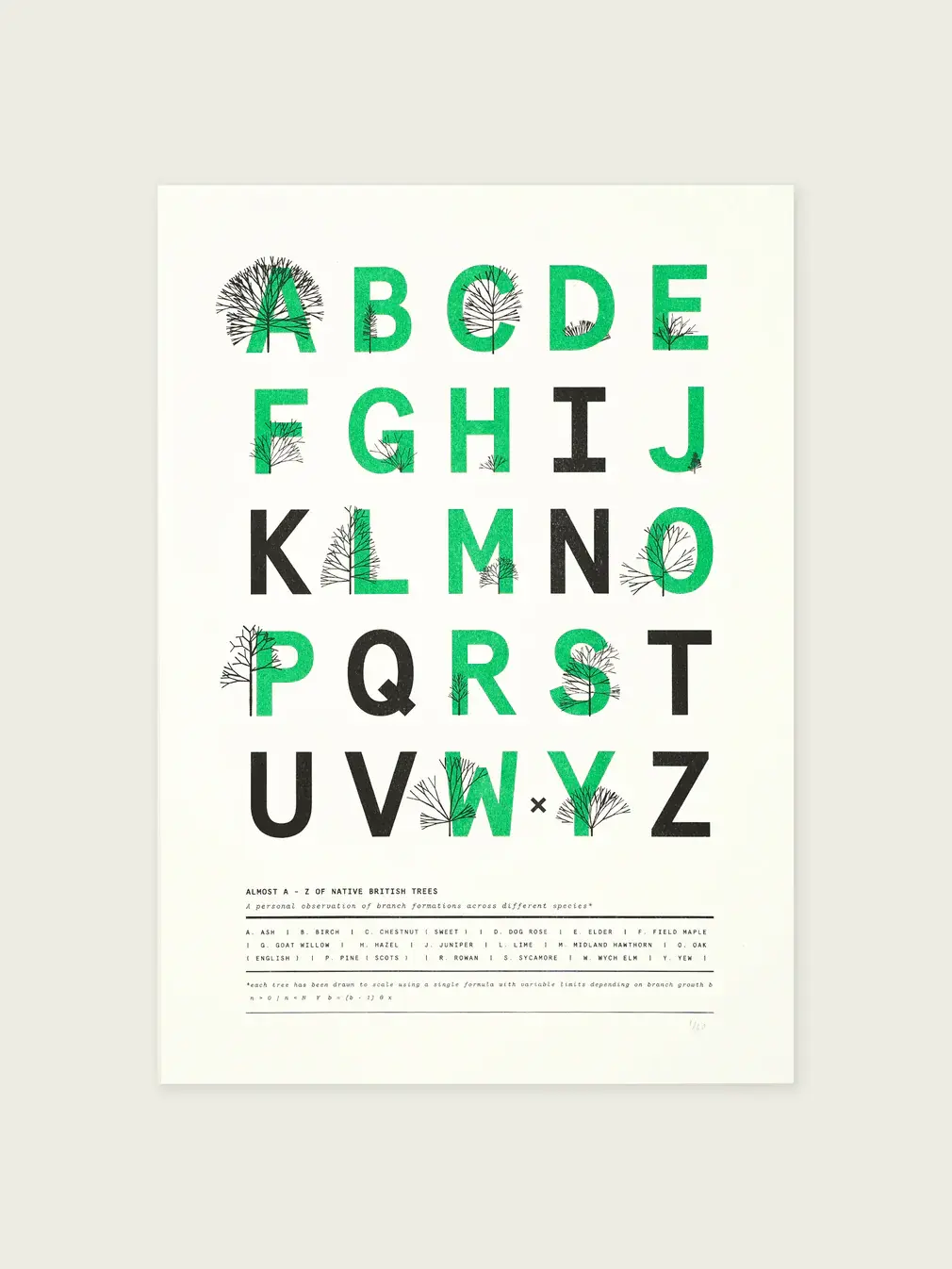 A-Z Of Trees A3 Limited Edition Risograph Print