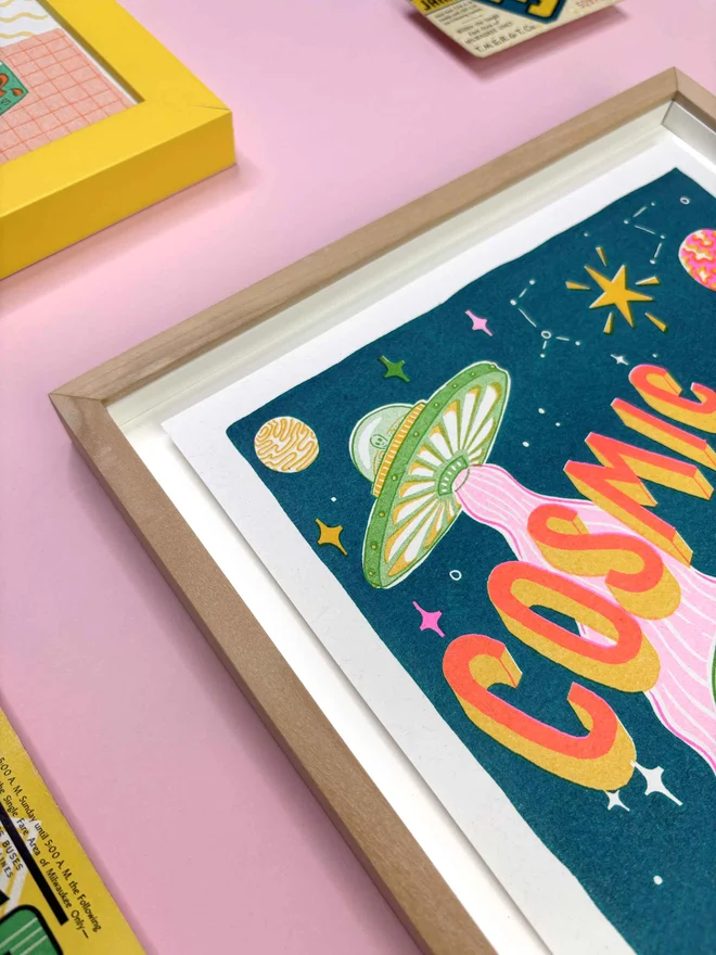 Blast off into a galaxy of imagination with this Cosmic Alien A4 Risograph Print. Featuring a space explorer from a faraway world, this playful artwork is filled with colour and curiosity — the perfect addition to any child’s room.