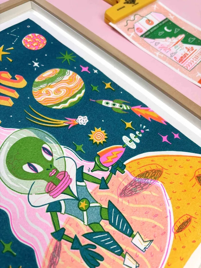 A4 Cosmic Alien Risograph Print