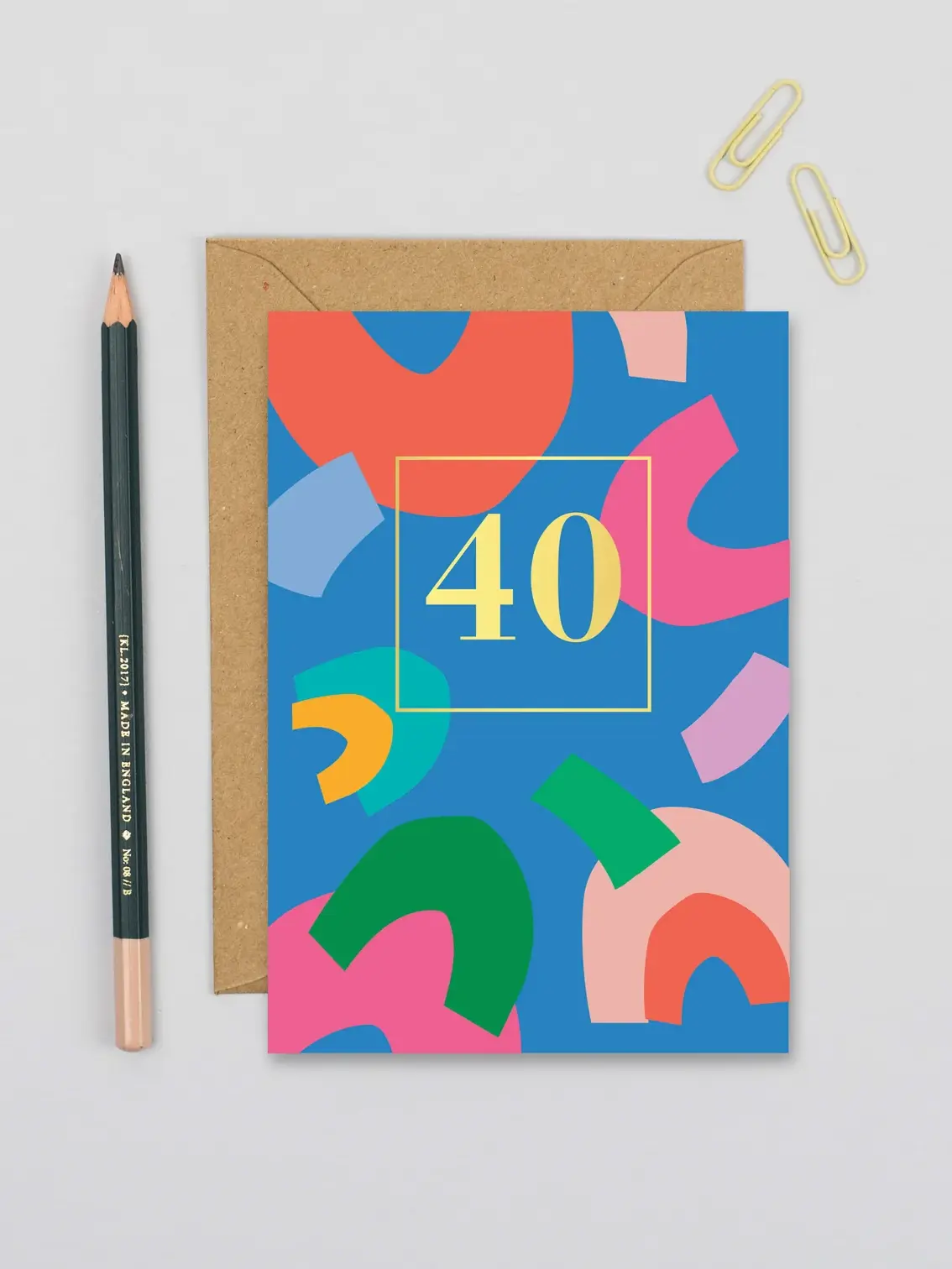 Celebrate the milestone of turning 40 with our captivating birthday card, with a gorgeous blue background and abstract shapes that evoke a sense of modern elegance. At its centre shines a gold foil '40', adding a touch of opulence and significance to the occasion.