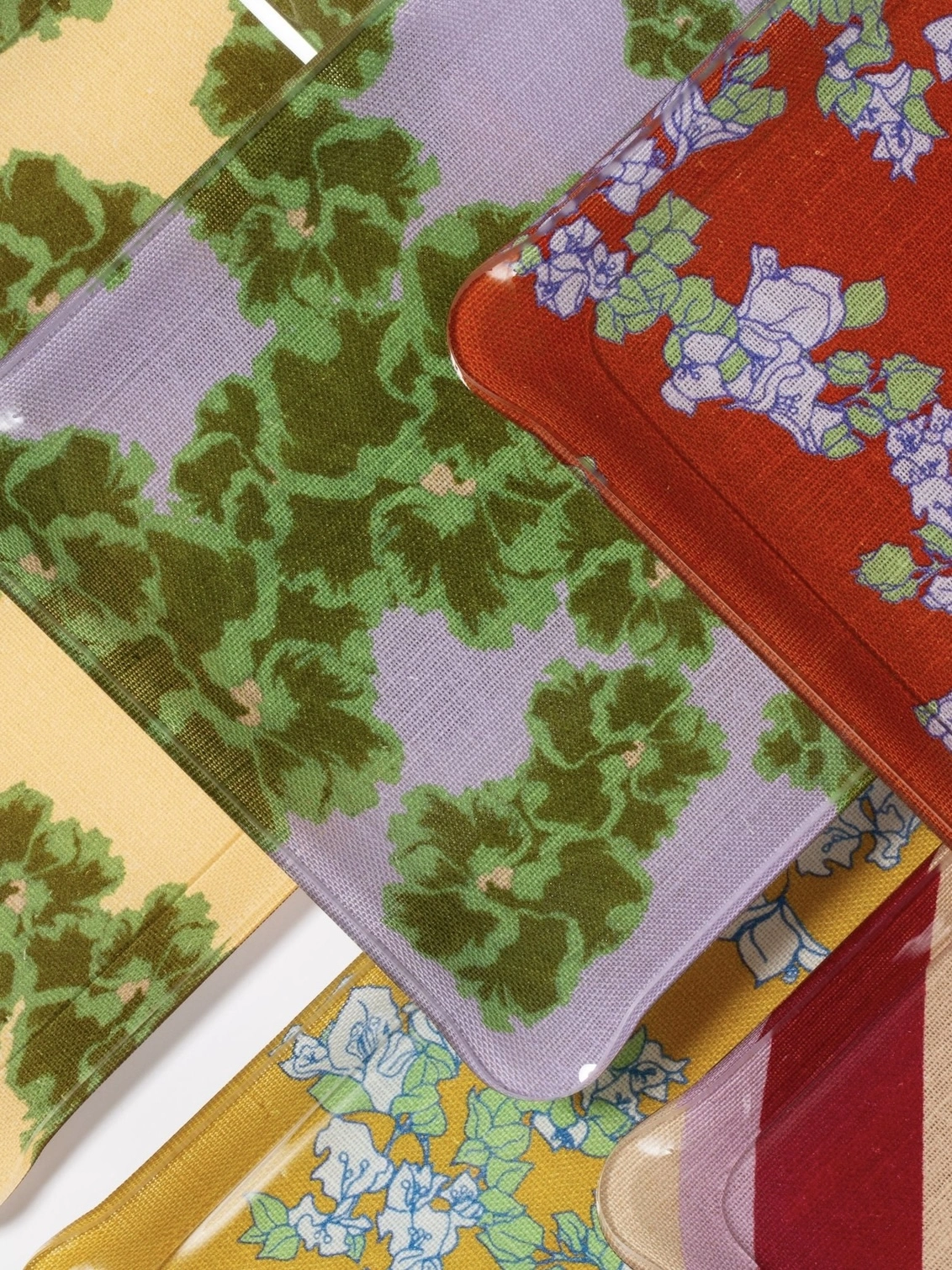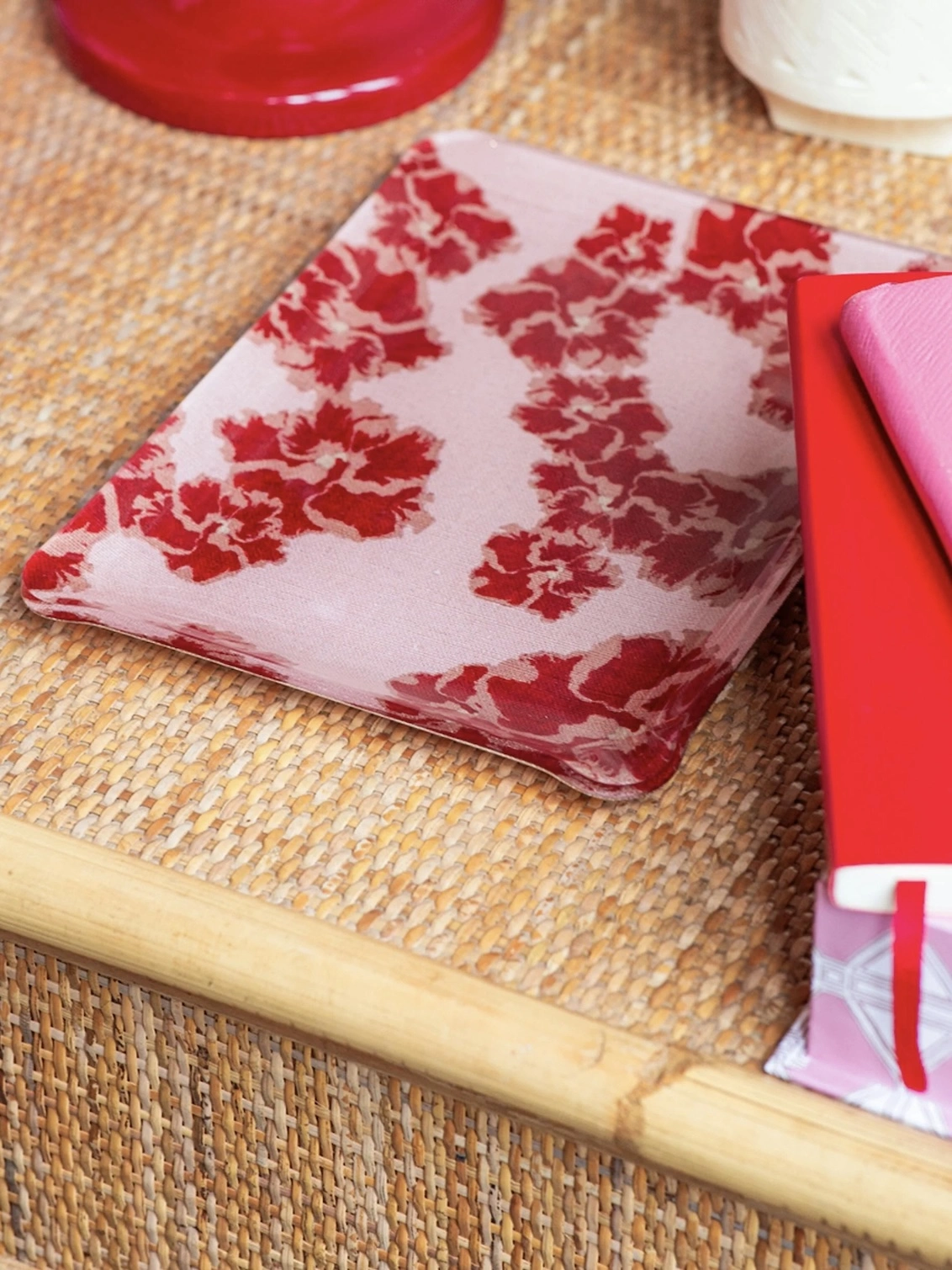A very decorative acrylic tray made in France with Dar Leone's own range of textiles from the Ronko Hibiscus and Najjar Collection.