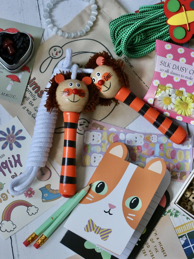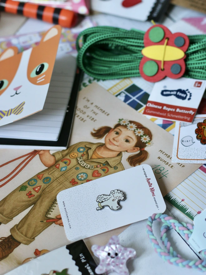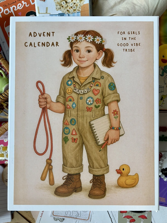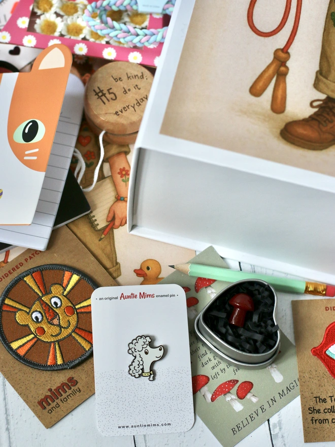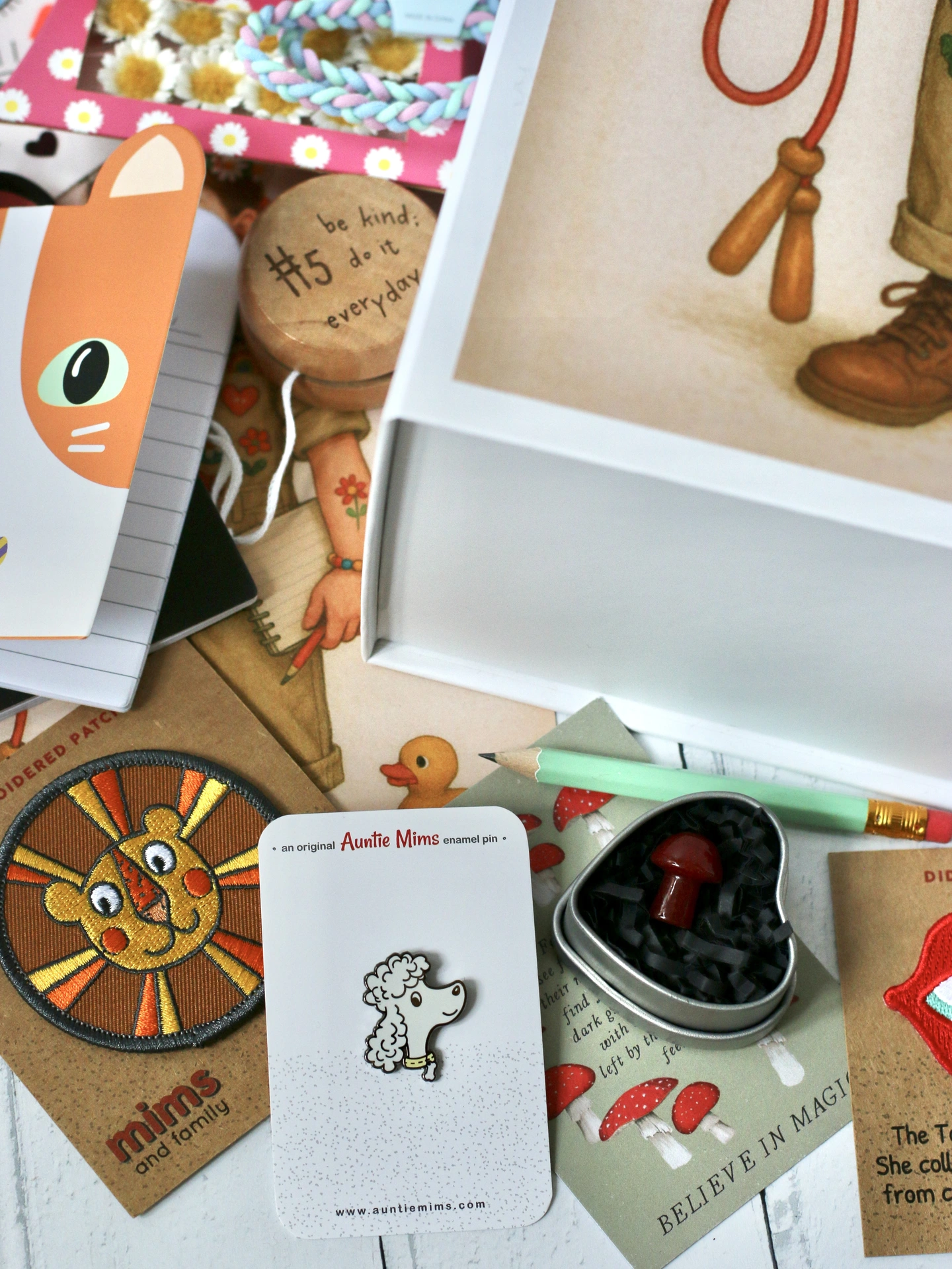 A beautiful advent calendar full of 24 packets of fun. Twenty four individually hand wrapped, high quality gifts that will all bring joy. Expect to find: Meri Meri hair clips, temporary tattoos and tassel garland; retro games and skipping rope; a delightful mini china tea-set in a picnic basket by Small Foot toys, a paper book by The Printed Peanut, plenty of pins and patches by Mims and Family and other brands; silk daisies for a daisy chain; a gemstone and gemstone bracelet; pencils and notepads; wooden dice letter beads; a unique numbered membership certificate - just for fun; and plenty more surprises all in a magnetic snap-shut box.