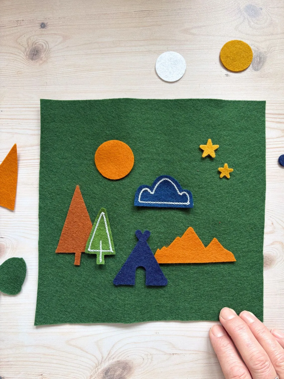 Layer shapes to build small landscapes, stitch simple details, or create your own compositions.