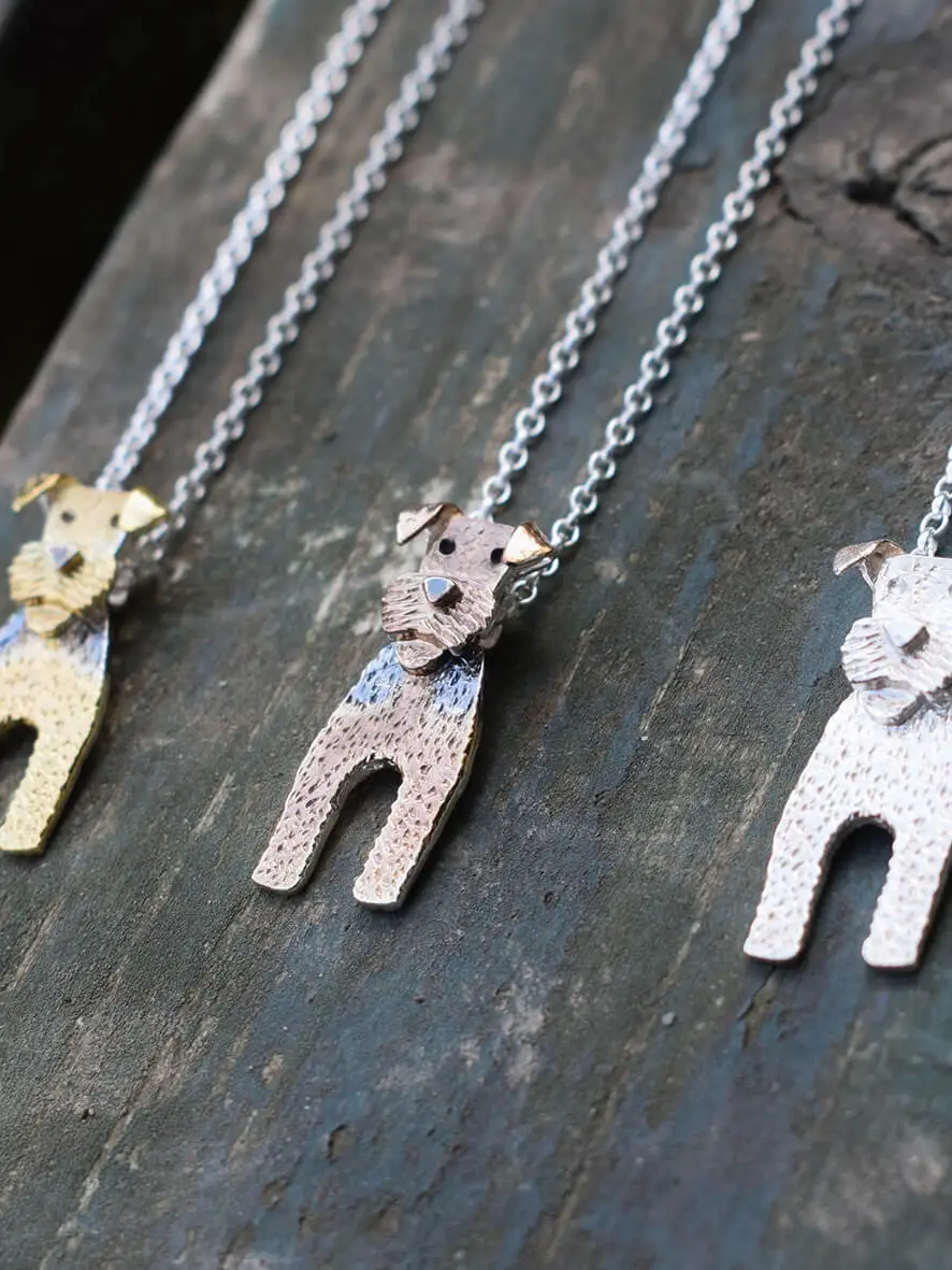 This necklace is extremely versatile, and the Airedale Terrier dog will be right at home coming with you to work or out on a date night!