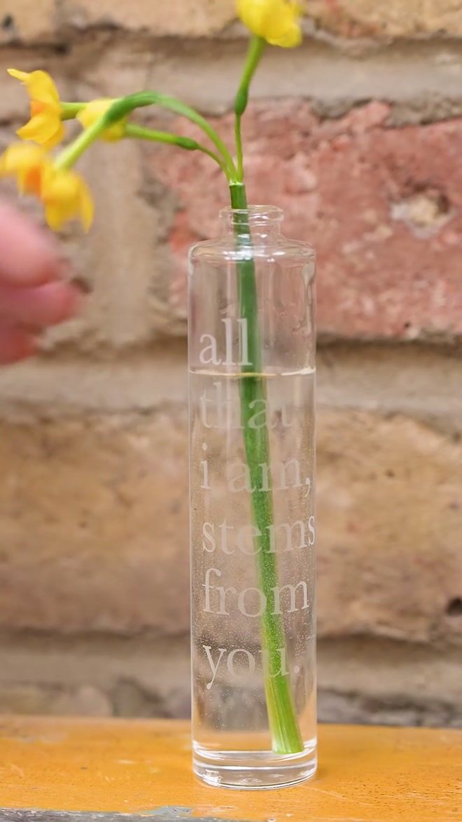 Each vase is individually etched by Andy Poplar in his small studio in the North of England. Featured in magazines, TV and social media posts, it's part of an etched collection that can be found sitting on the desks of writers, artists, scientists and lovers of wordplay from York to New York.