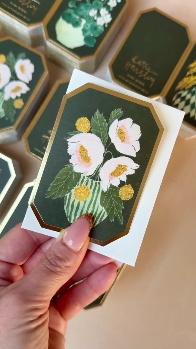 Die cut, delicately foiled mini greeting card with botanical illustration.