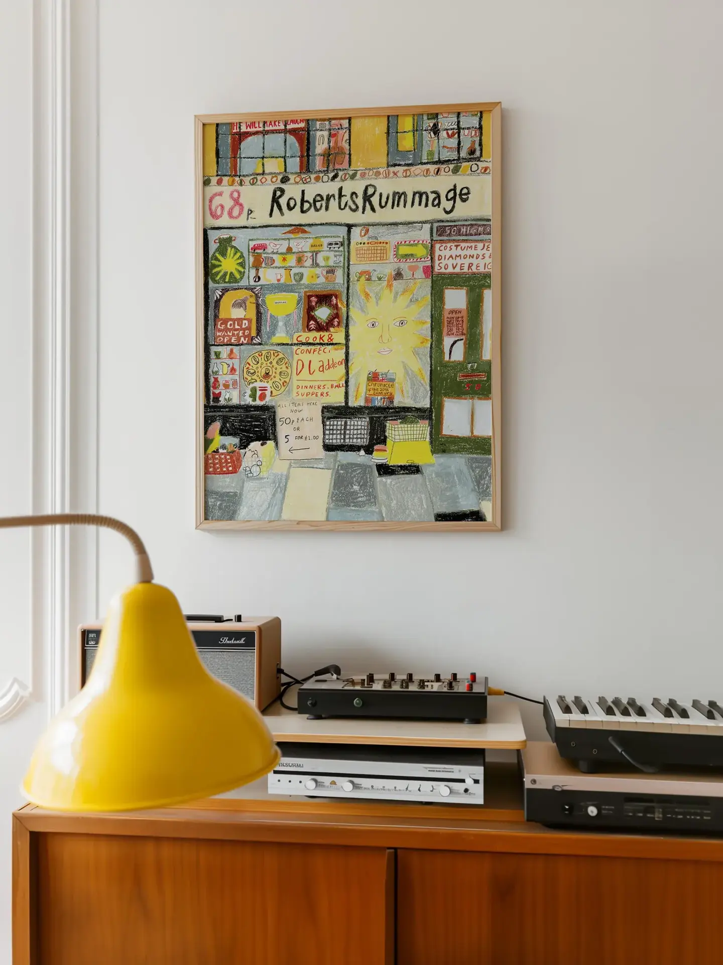 High-quality Giclée art print of an antique shop, a mixed media illustration inspired by the wonderful and eclectic rummage shops of Hastings and beyond.