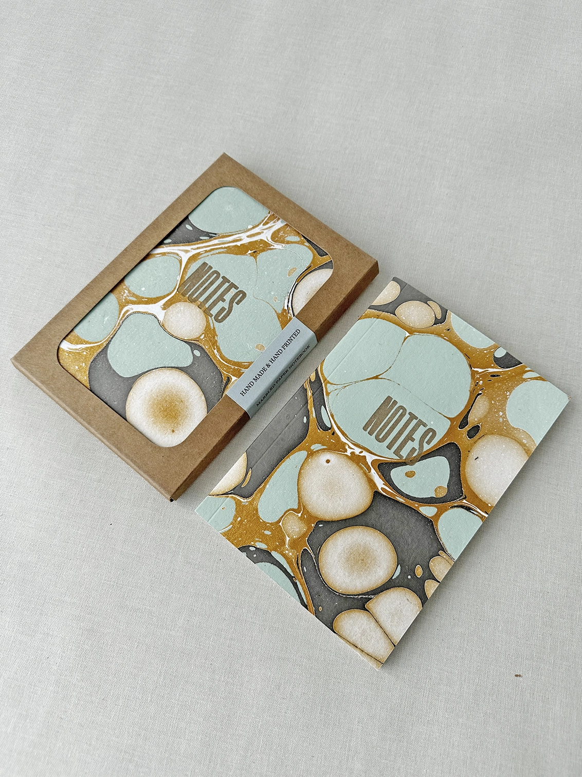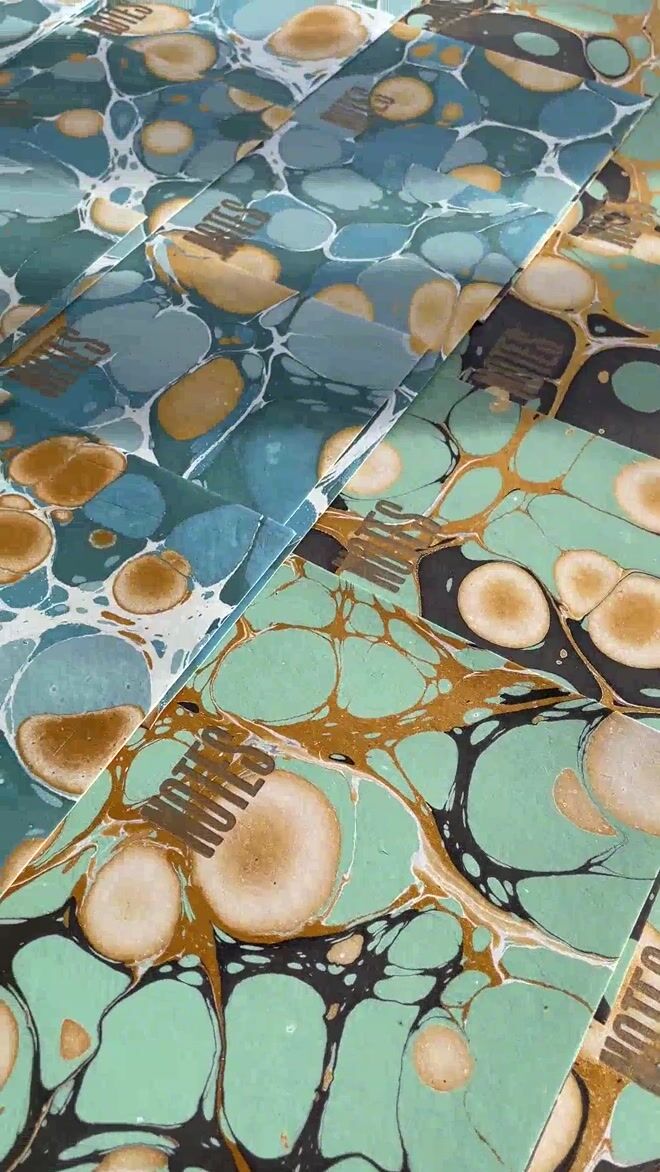 Letterpress printed notebook with an original hand marbled cover on thick handmade paper - each book is unique.