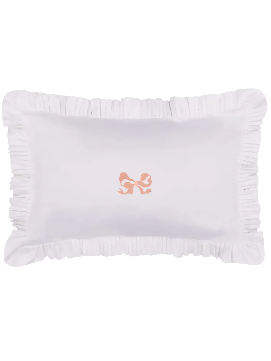 The pillows come in a standard UK size as well as smaller "top pillows" measuring at 40cm x 60cm. Adding the sweetest touch of pink to any bedroom, the design features seated ruffle frill border and a delicate bow embroidered in the centre of the pillow case in light blush.