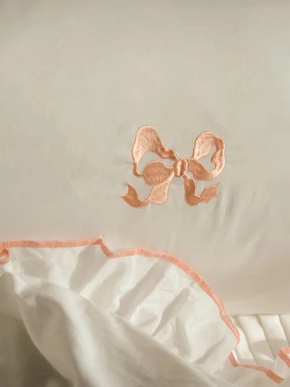 Introducing the exclusive Sukun x The Go-To Arabella Bow Ruffle Frill Pillowcases. Made from luxurious 300 thread count, 100% fine cotton with a buttery soft finish.