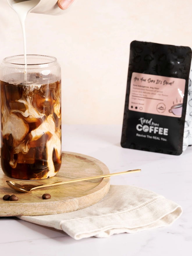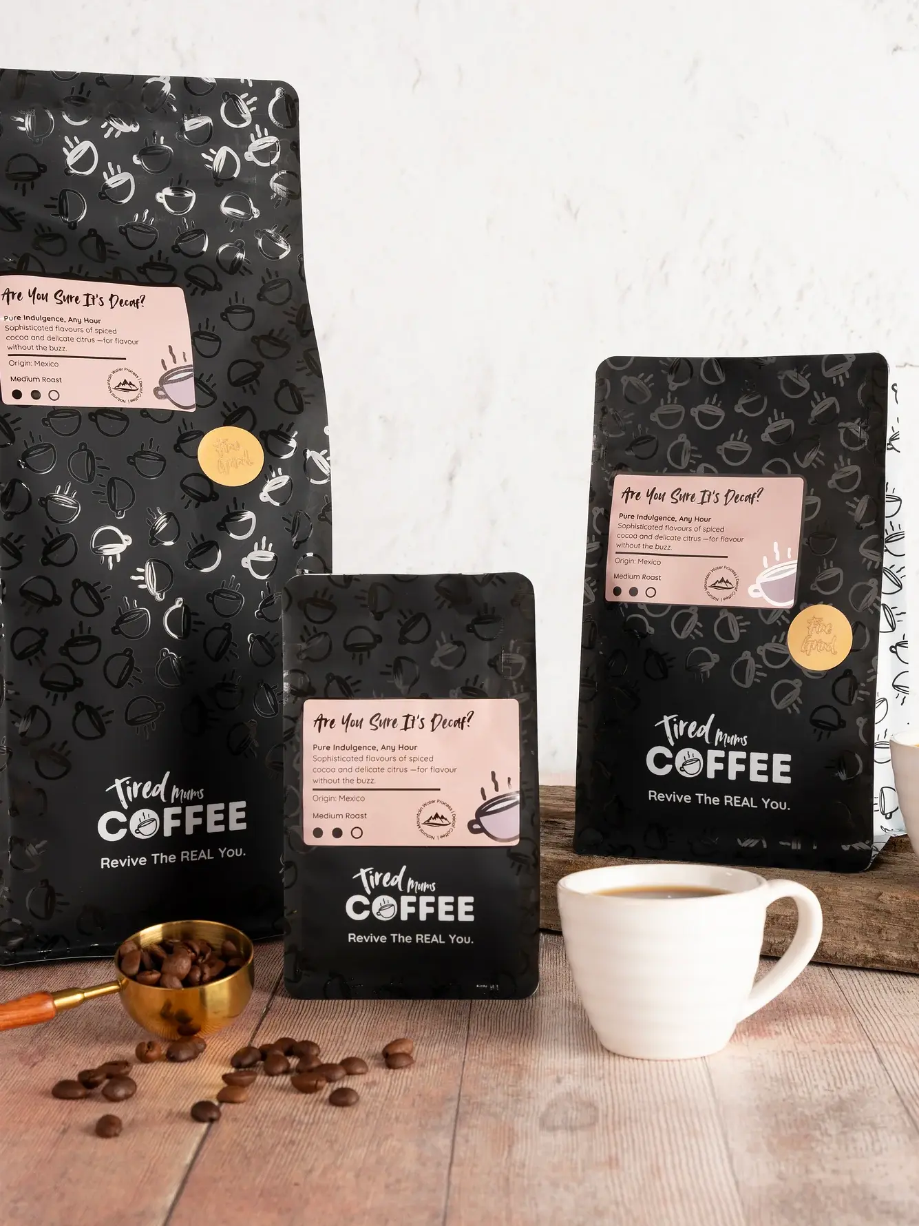 Pure Indulgence, Any Hour! Mountain water process decaffeinated coffee. All of the flavour, none of the compromise. Small batch, Welsh roasted speciality coffee. Medium to dark roast. Sophisticated flavours of spiced cocoa and delicate citrus - for flavour without the buzz.