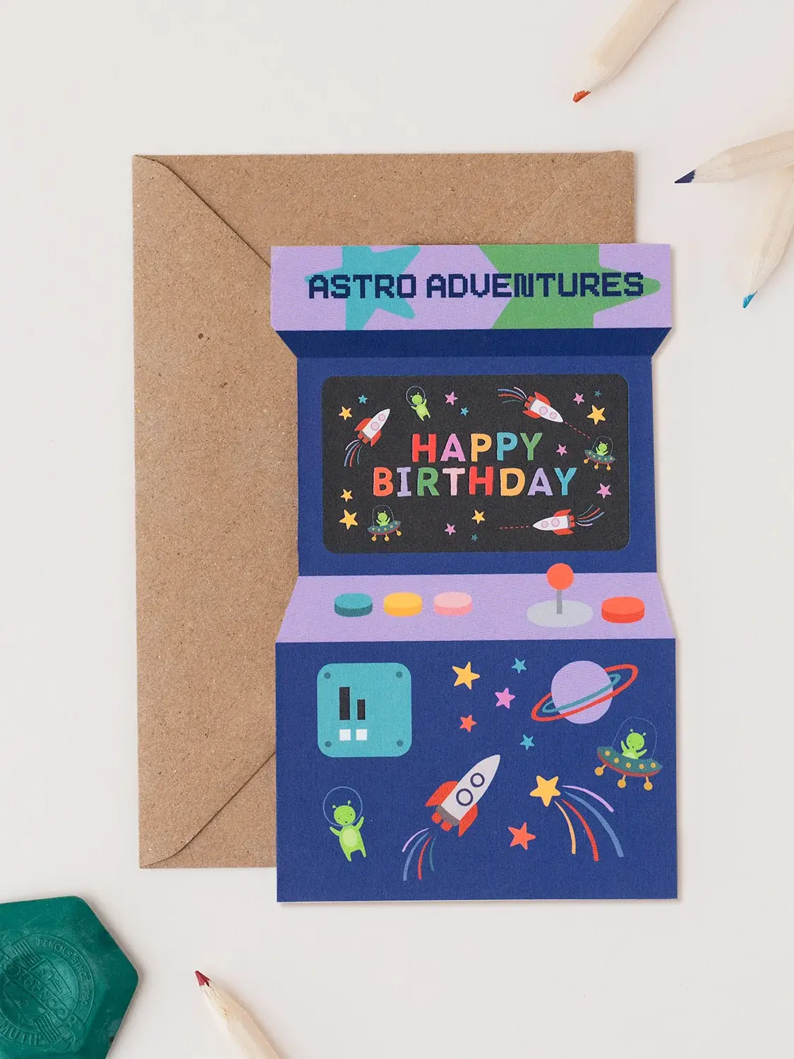 'Astro Adventures Happy Birthday' Arcade Shape Birthday Card