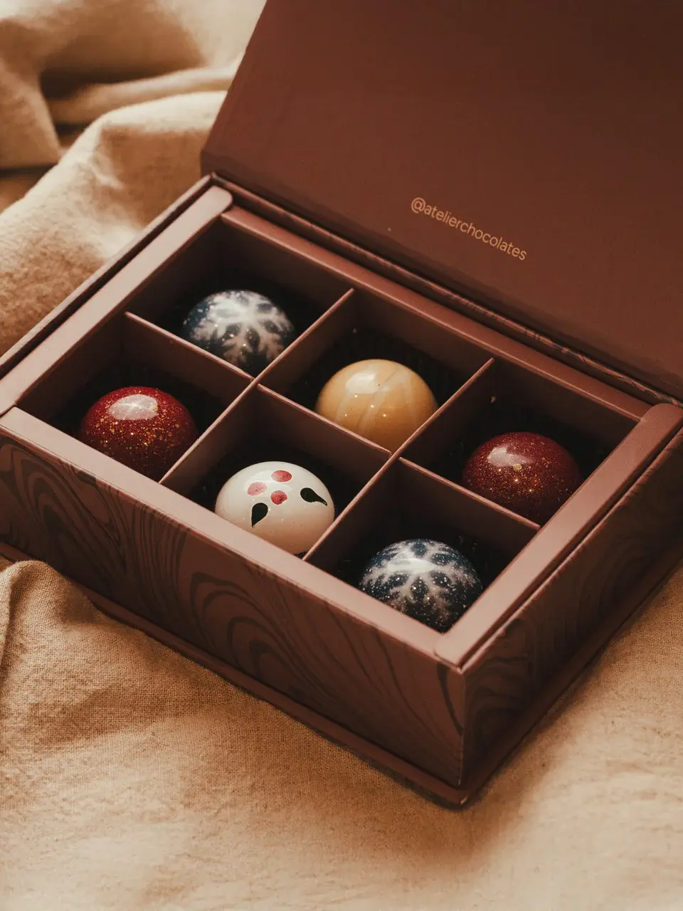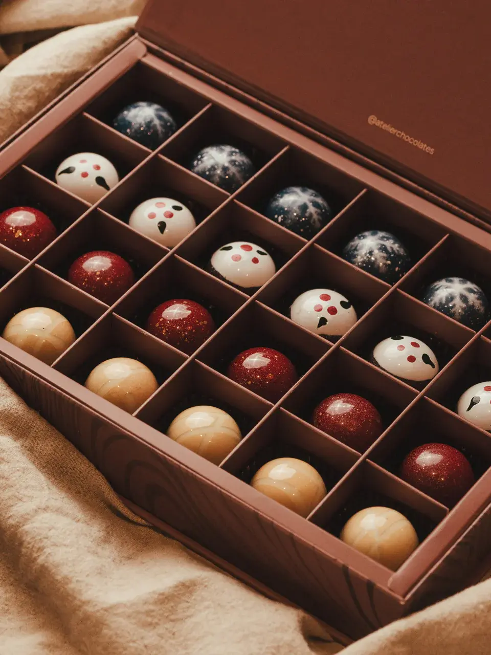 Experience the Christmas season with a festive selection of our handcrafted bon bons.