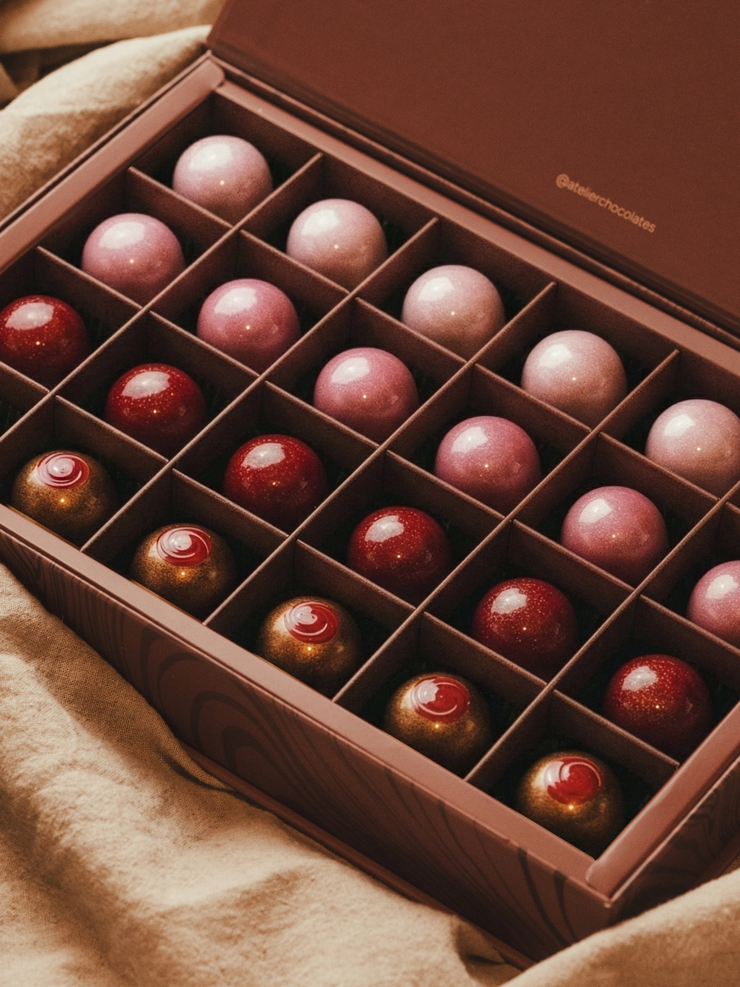 Experience the Valentine’s season through a curated selection of our handcrafted bon bons. A romantic palette of soft pinks and rich reds, created for sharing with someone special...
