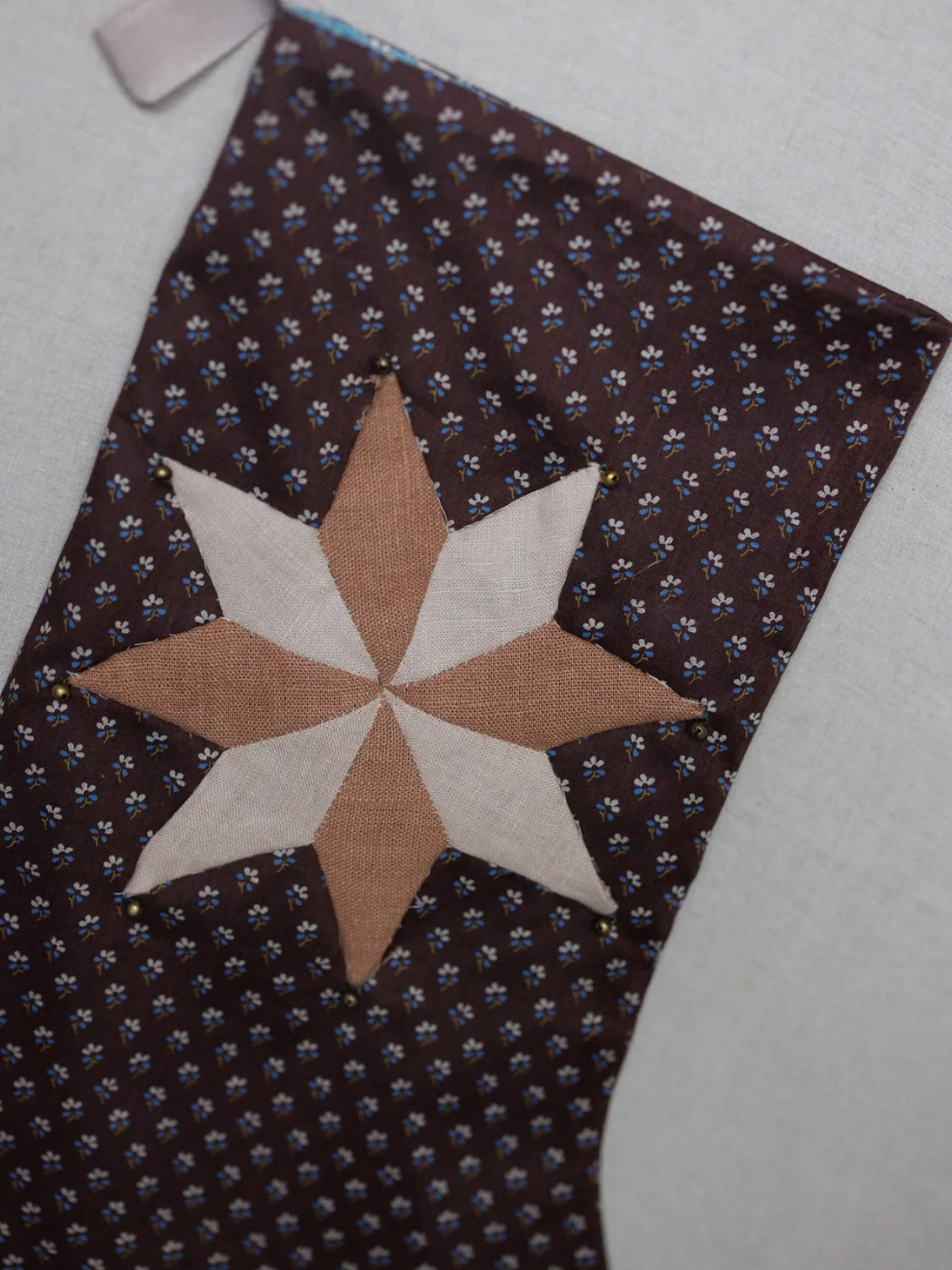 Crafted in printed Japanese cotton and lined with Liberty Tana Lawn cotton, these stockings are made in small numbers using the English paper piecing patchwork technique.