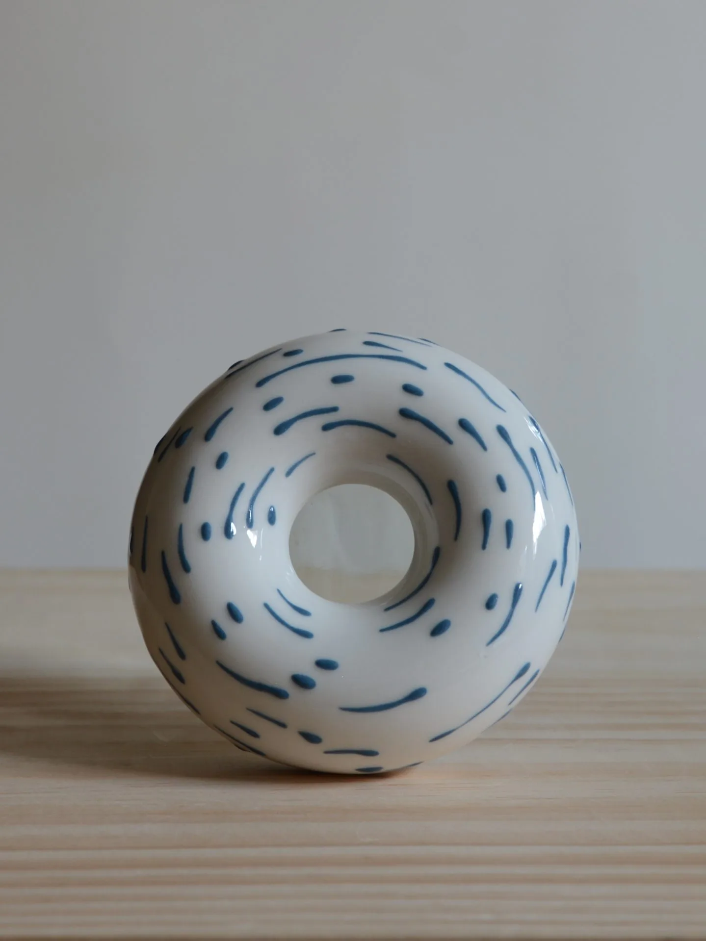 Each piece is hand made, featuring a one-of-a-kind pattern crafted with blue porcelain slip and finished with a glossy, transparent glaze.