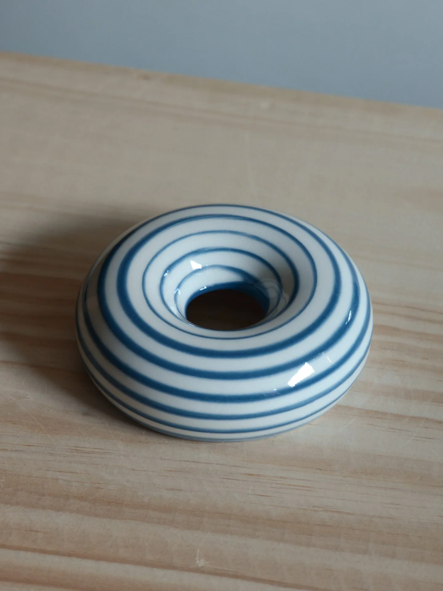 Each piece is hand made, featuring a one-of-a-kind pattern crafted with blue porcelain slip and finished with a glossy, transparent glaze...