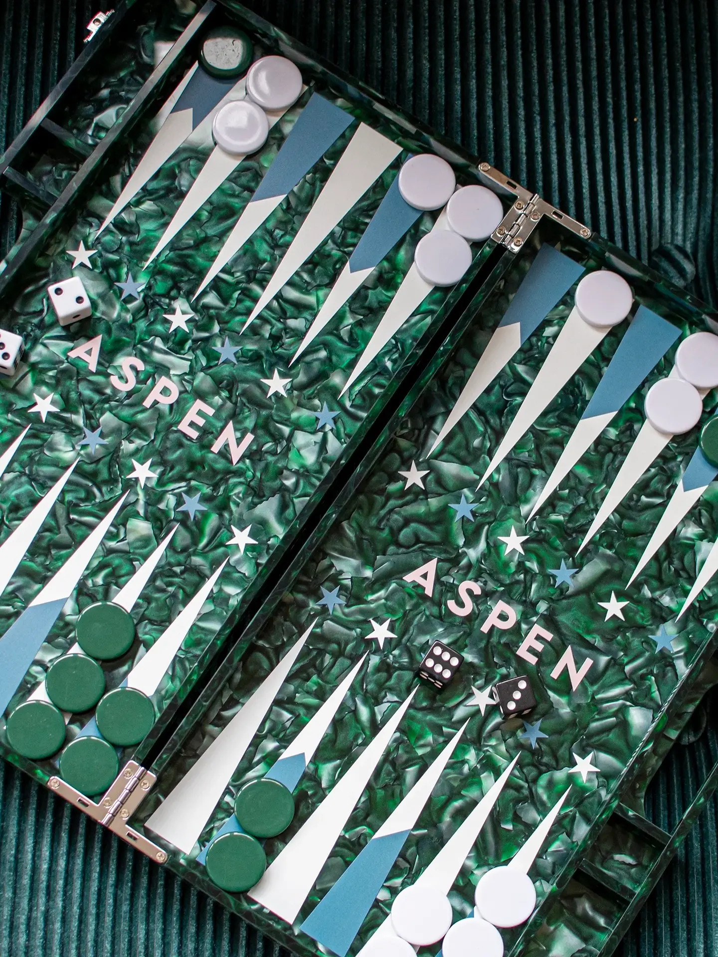 This iconic limited edition Aspen set is everything you need for the chicest après ski accessory of the holiday season. A playful yet sophisticated design on a background of green pearly marble acrylic is sure to make a statement...