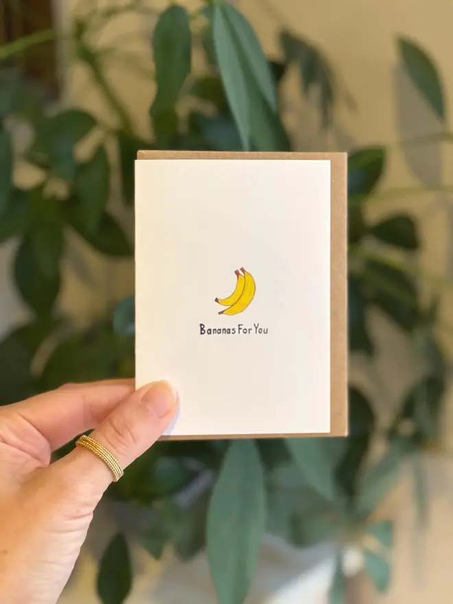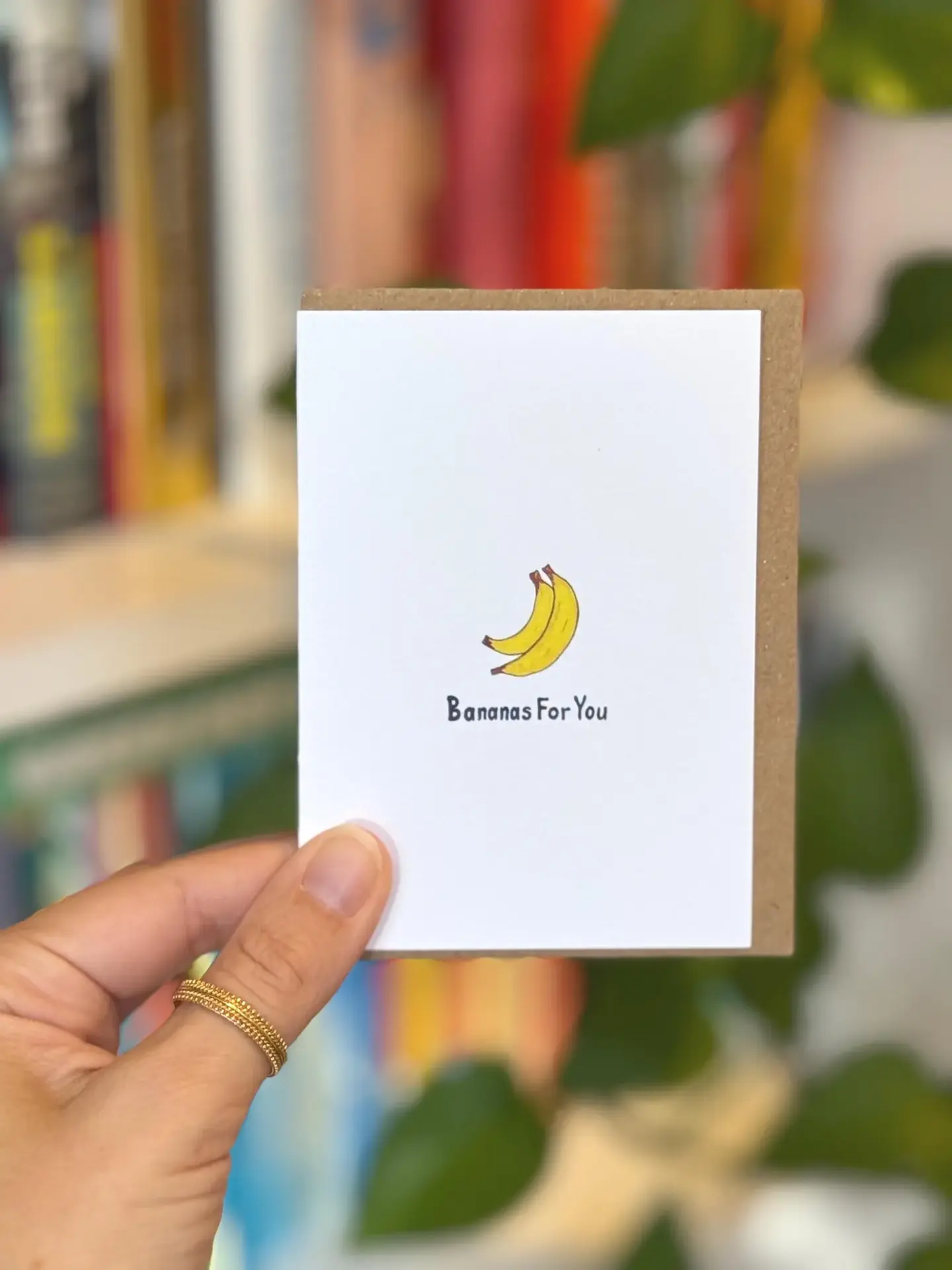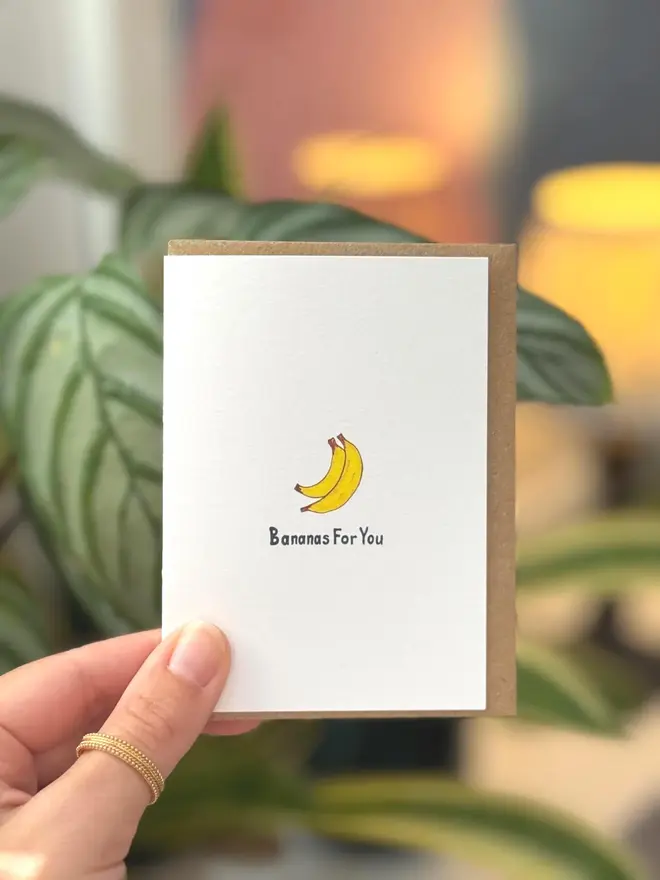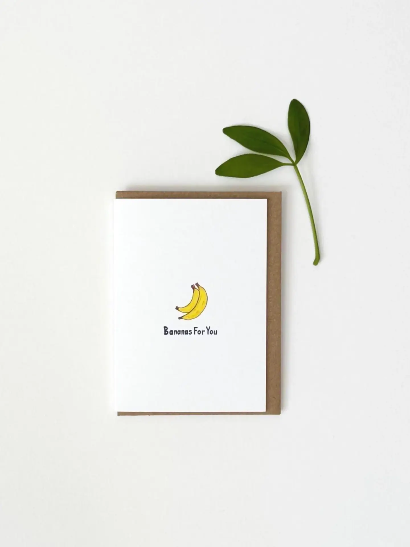 Bananas For You watercolour mini card. Hand painted by me and professionally printed on delicately textured matte white 324 gsm luxury print paper.