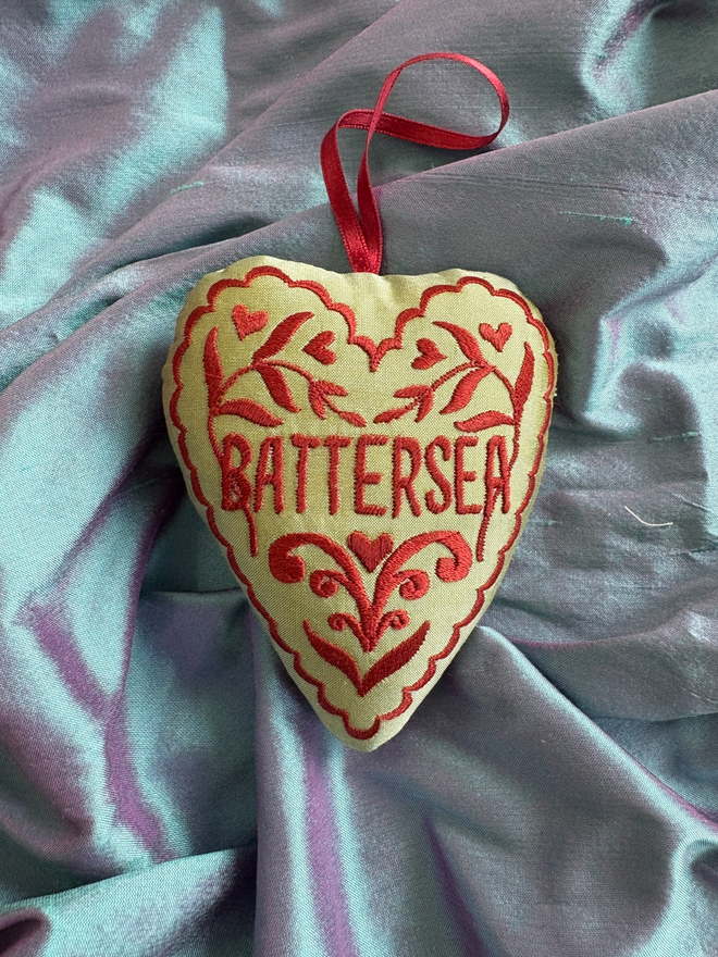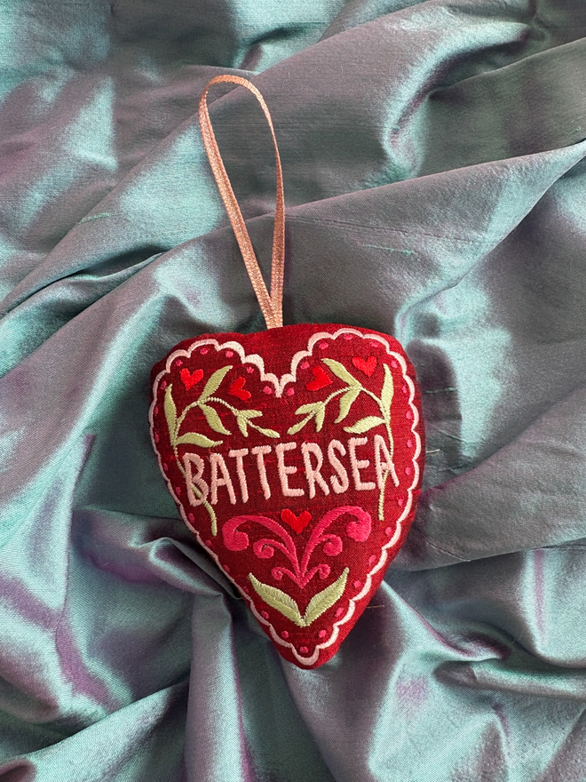 Battersea Silk Heart Hanging Decoration