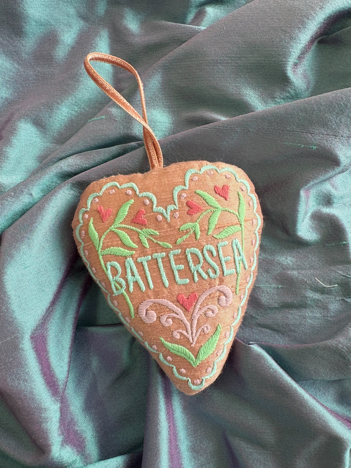 Personalised Embroidered Name Silk Heart Hanging Decoration
