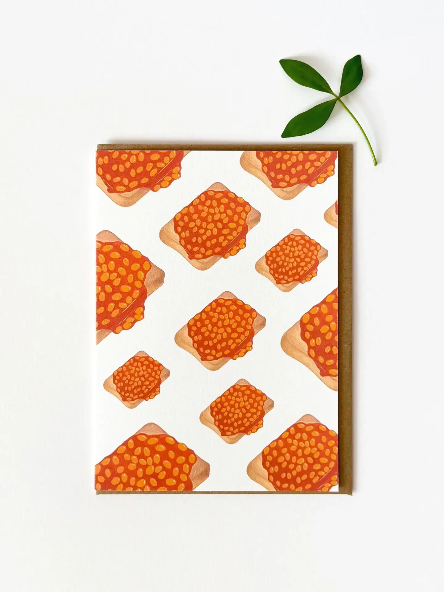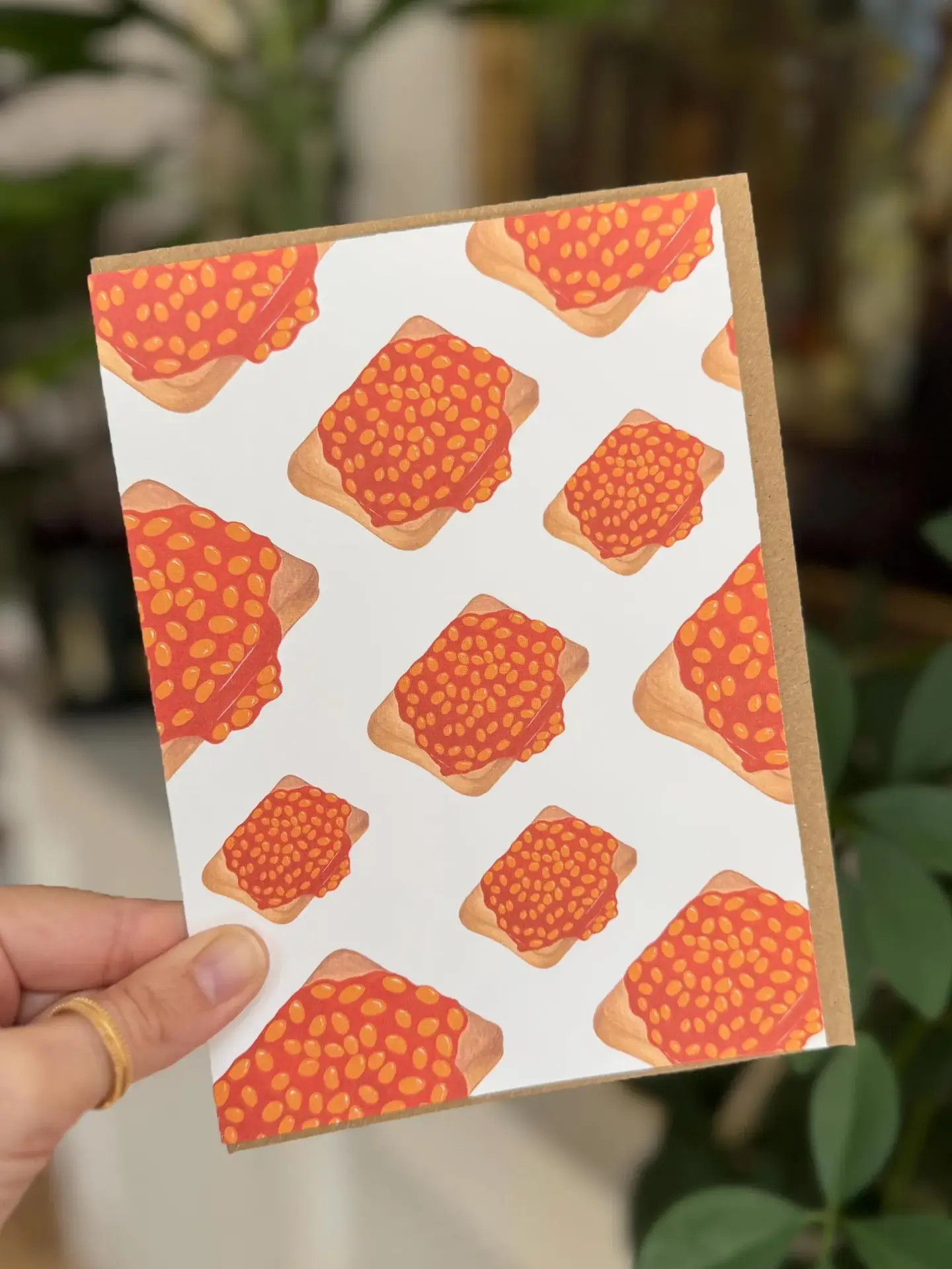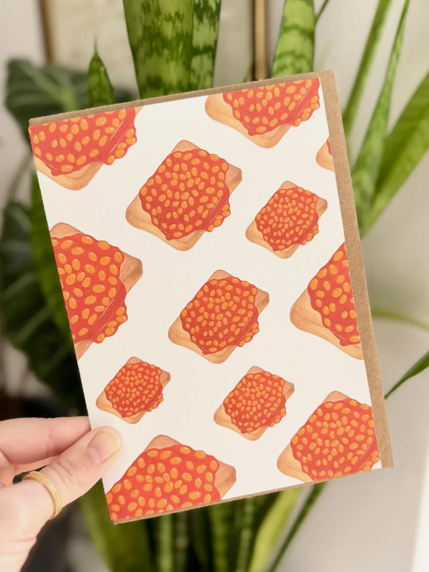 The perfect card for the baked bean lover. Printed greetings card from an original hand-painted watercolour illustration...