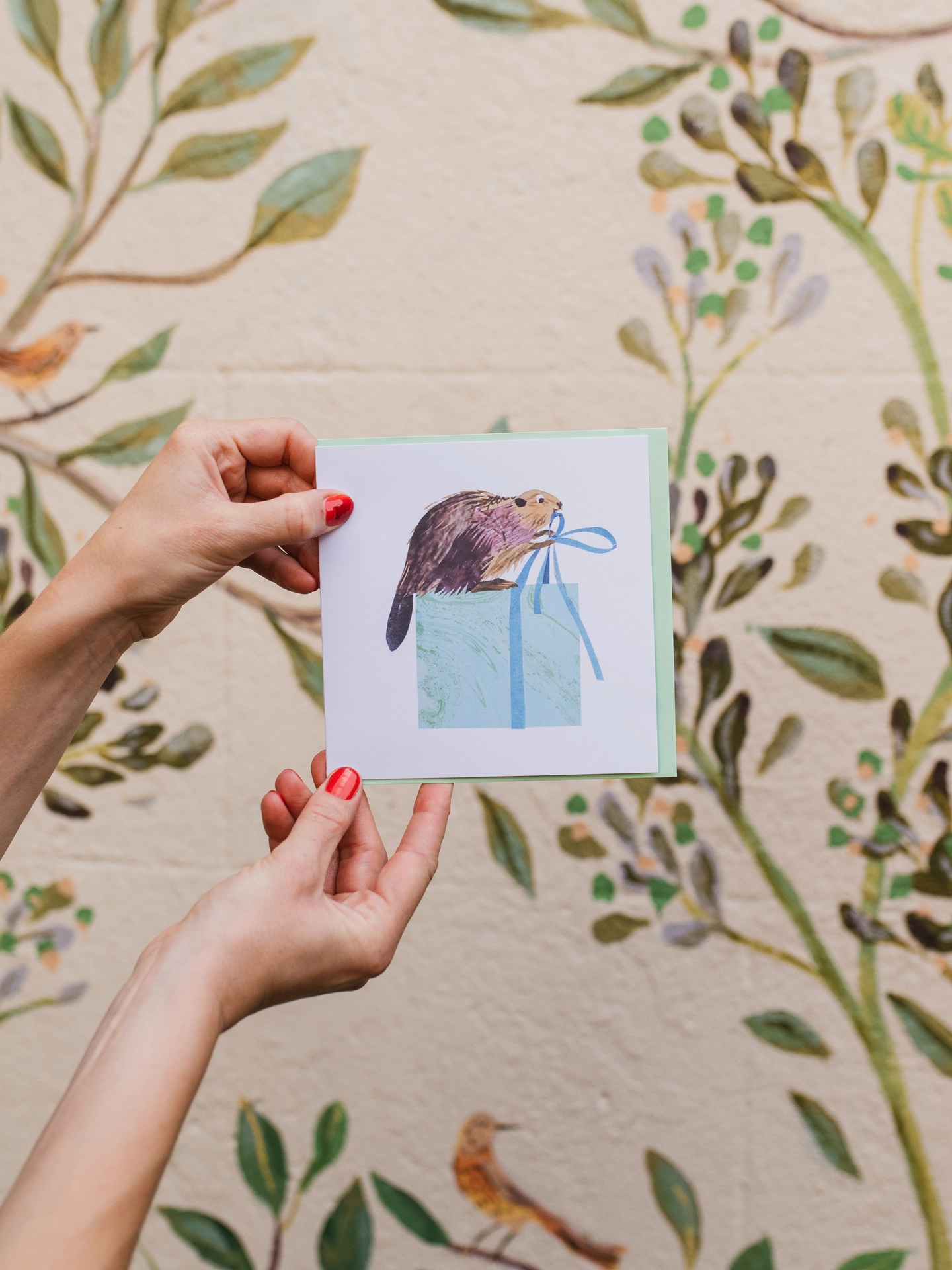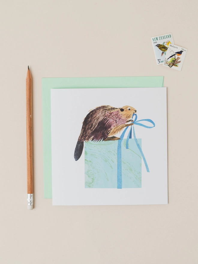 This busy little beaver has been hard at work — wrapping up a special surprise! Featuring Kate Slater’s joyful mixed-media collage illustration, this charming card is bursting with colour, texture and character. Perfect for birthdays, thank-yous, celebrations or simply sending a smile, it’s a delightful way to share a little happiness.