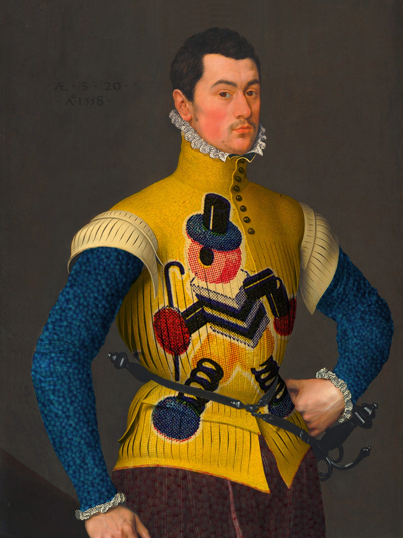 Part of a large ongoing series of works called The Product Placement Project. Humorous & fun Pop-Surrealist work exploring the connections and boundaries between art and advertising and a reflection on the functions of fashion & clothing