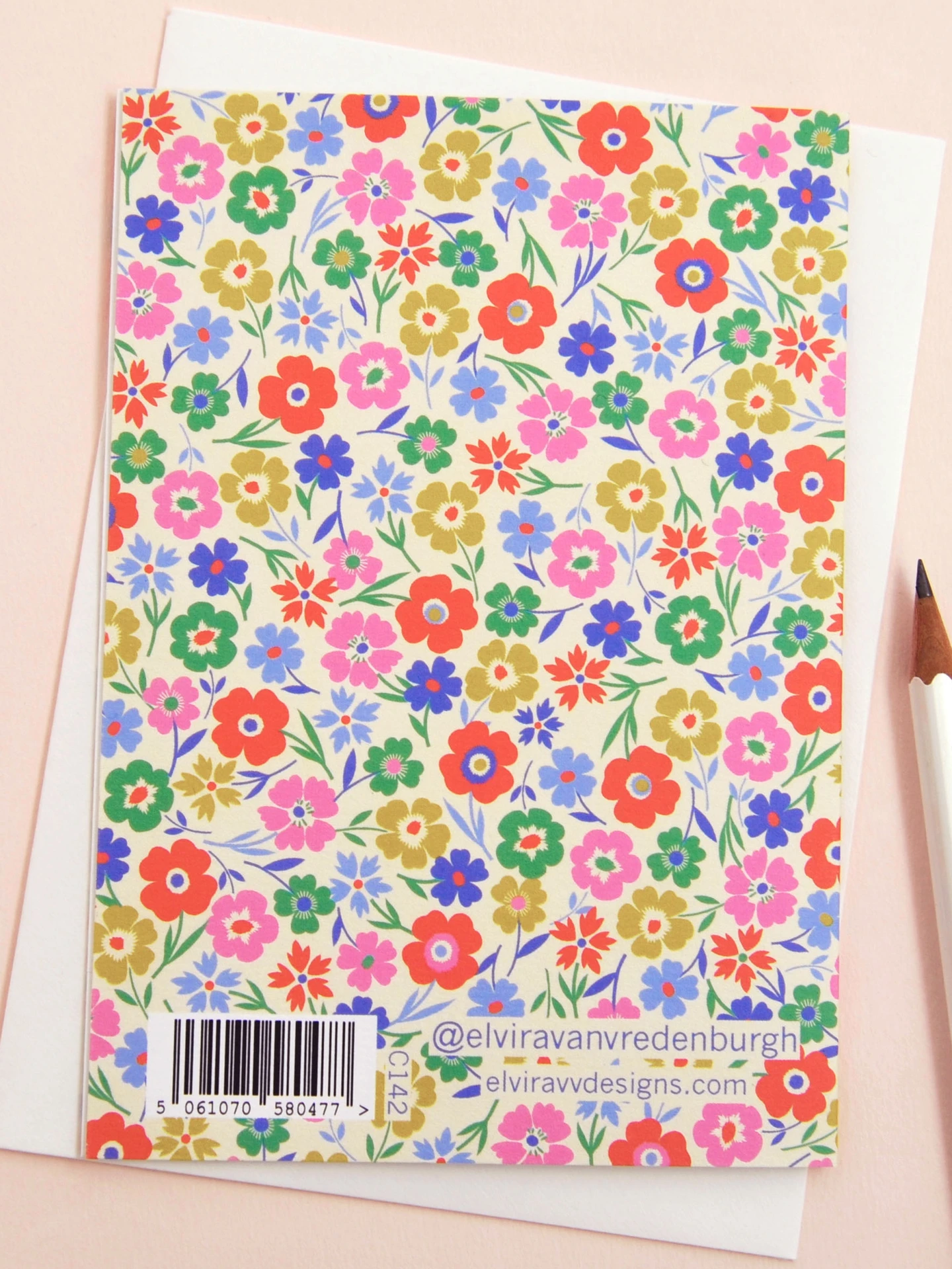 Perfect for Mother’s Day, but just as lovely for birthdays, thank yous or a thoughtful note to remind Mum how special she is. The small scale floral print and fresh colour palette make this card feel modern, cheerful and full of warmth.