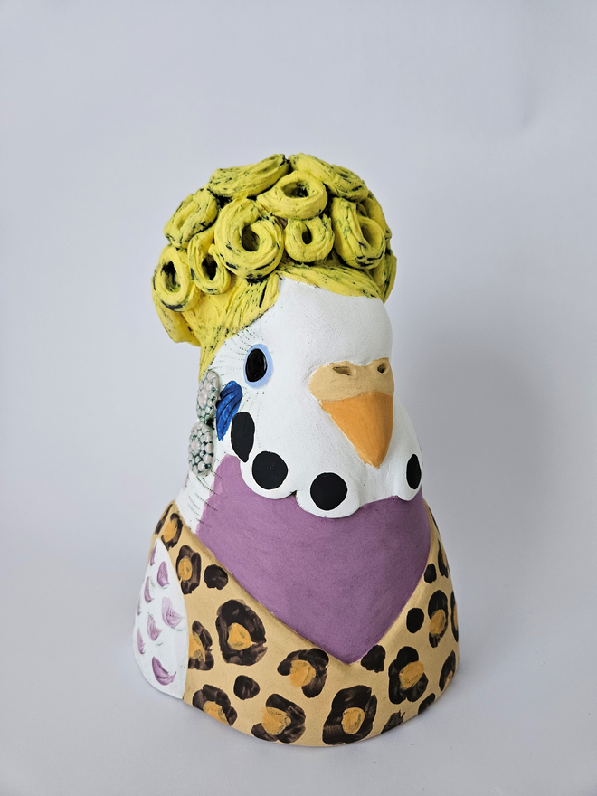Bett Lynch Budgie Bust Ceramics Sculpture