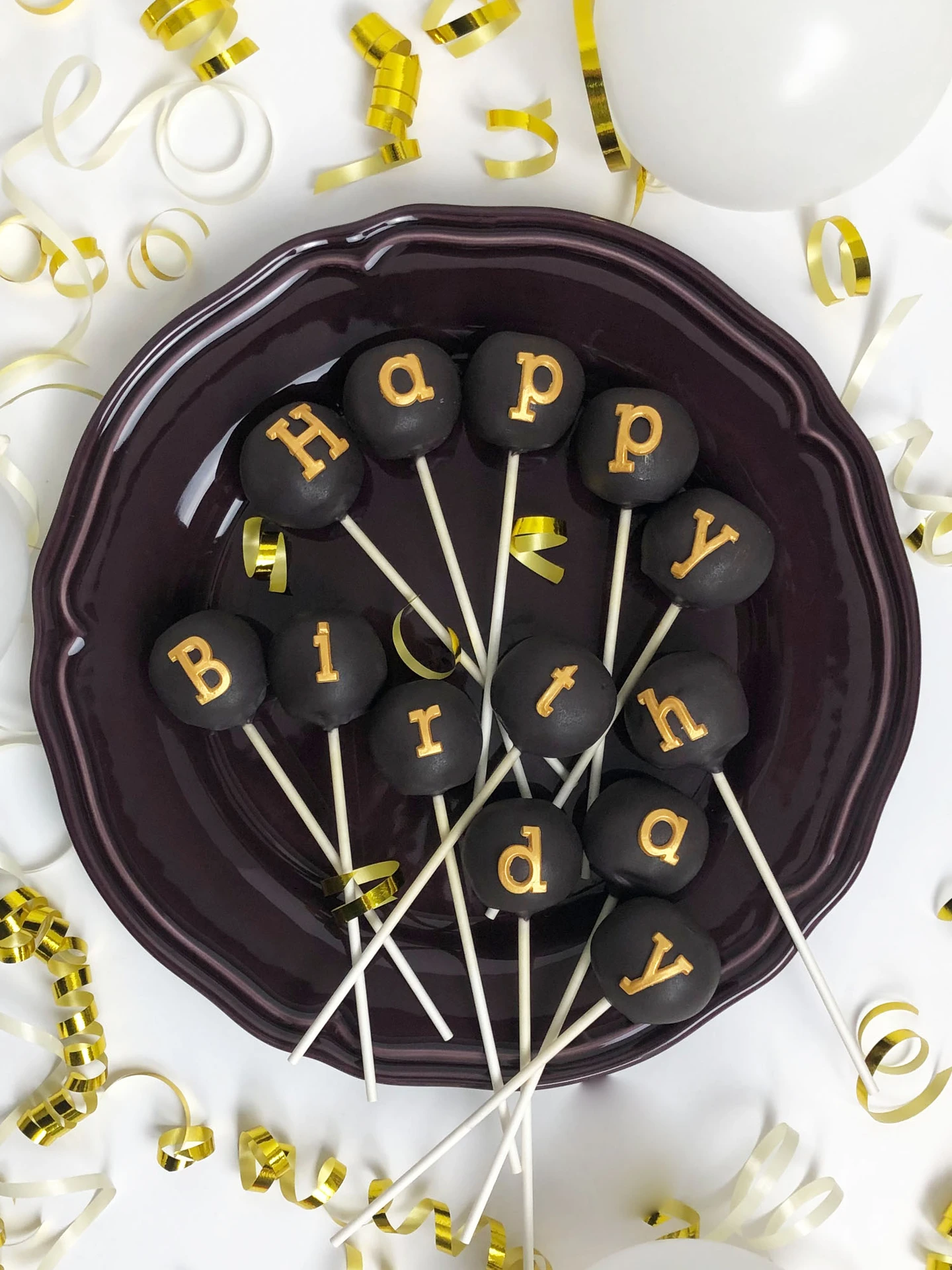 Black And Gold 'Happy Birthday' Cake Pops (Pack Of 13)