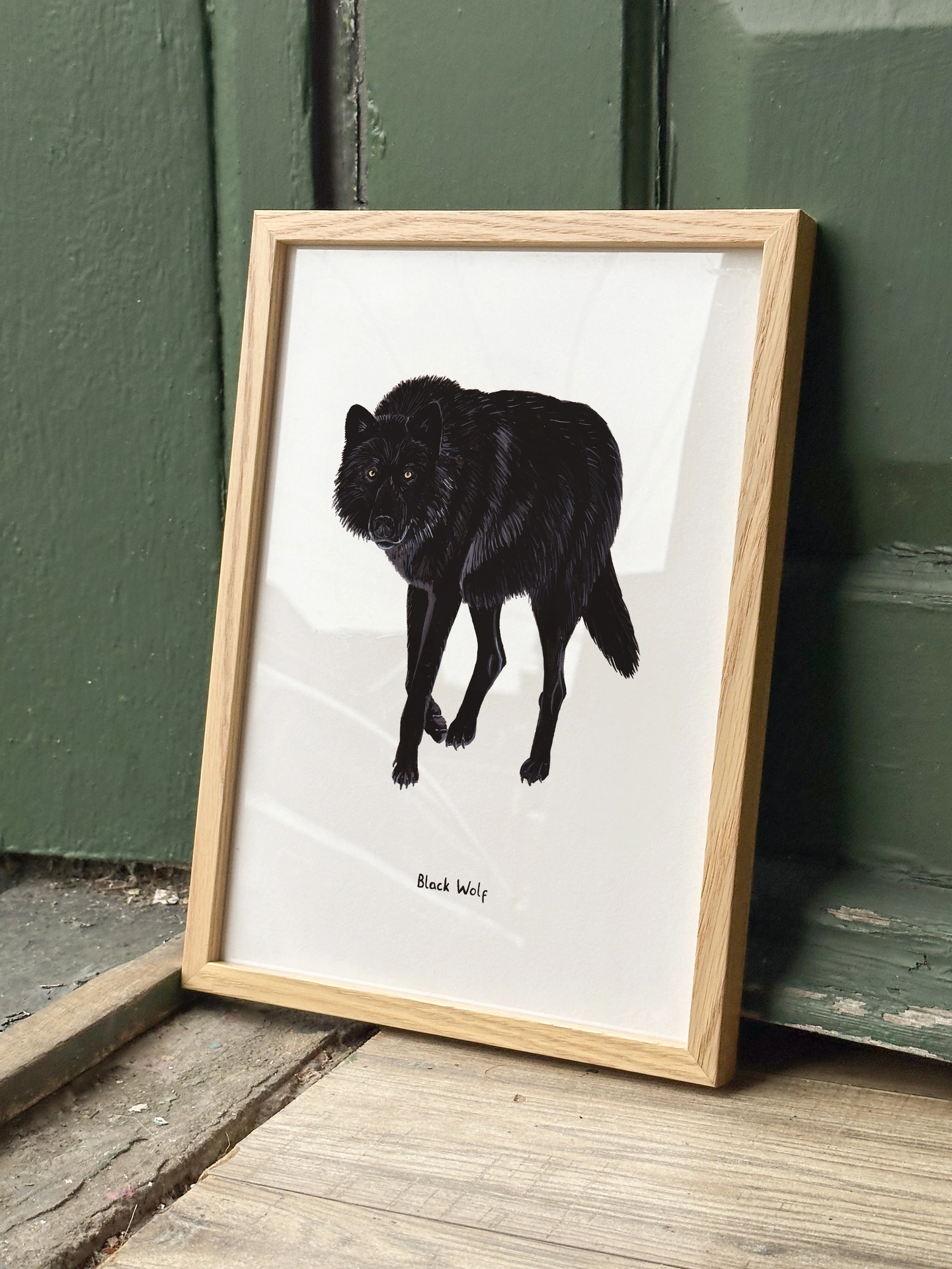 This print features an illustration of a Black Wolf, a beautiful, melanistic variant of the grey wolf!